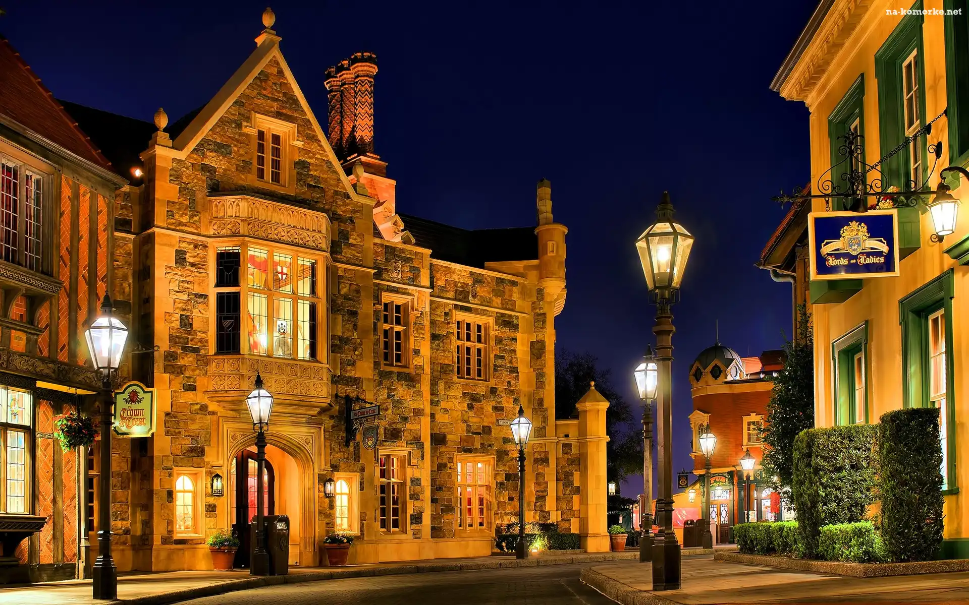 Domy, Miasto Anaheim, Kalifornia, Latarnie, Disneyland, Ulica na Komórkę