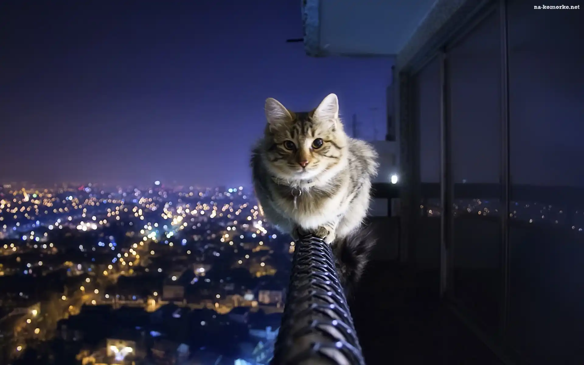 Miasto, Kot, Noc, Balustrada na Komórkę