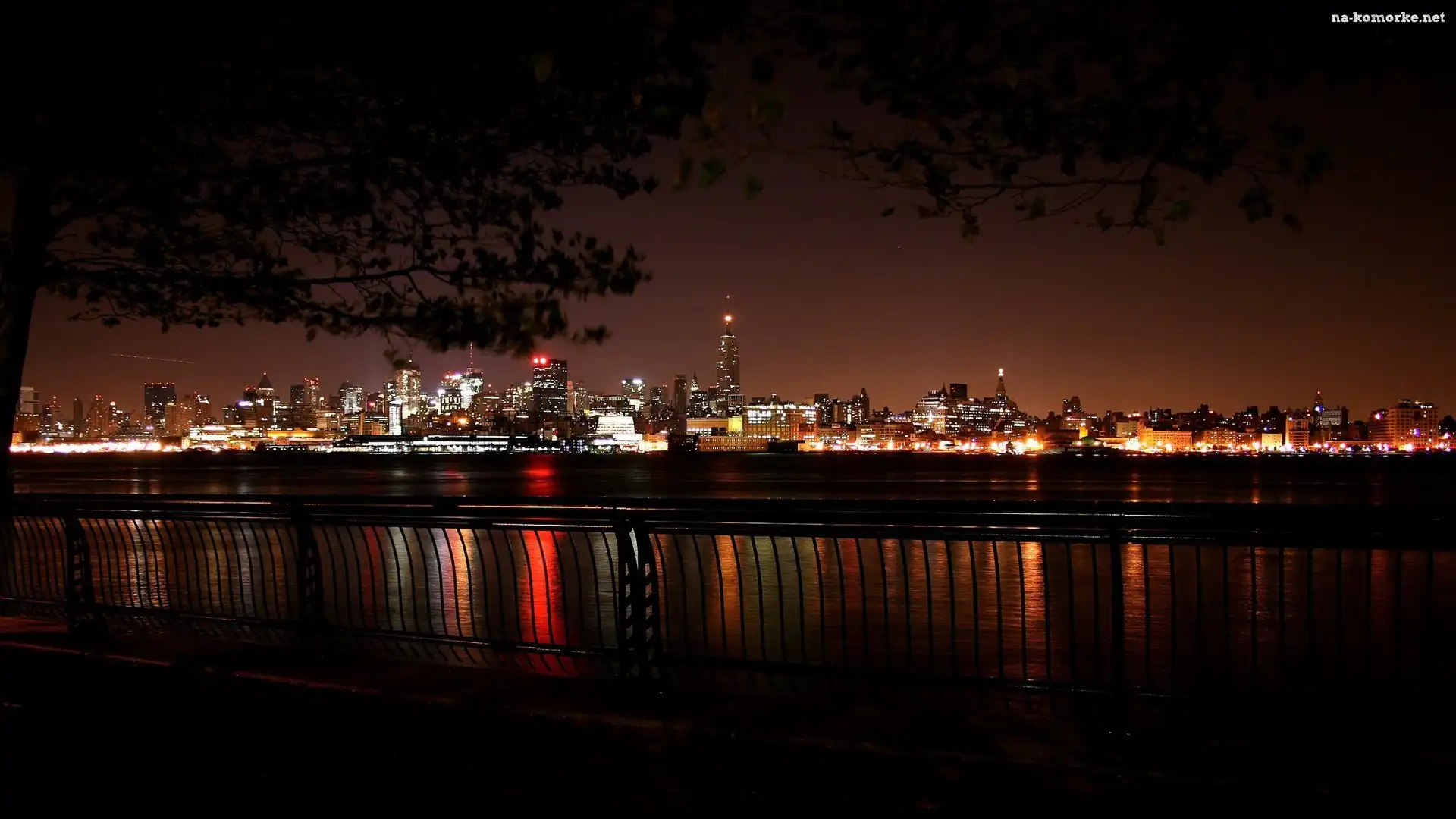 Miasto, Balustrada, Nocą, Rzeka na Komórkę