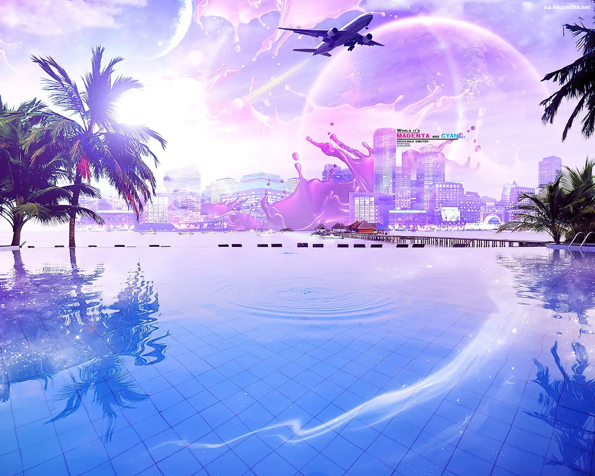 Miasto, Woda, Palmy, Samolot na Komórkę
