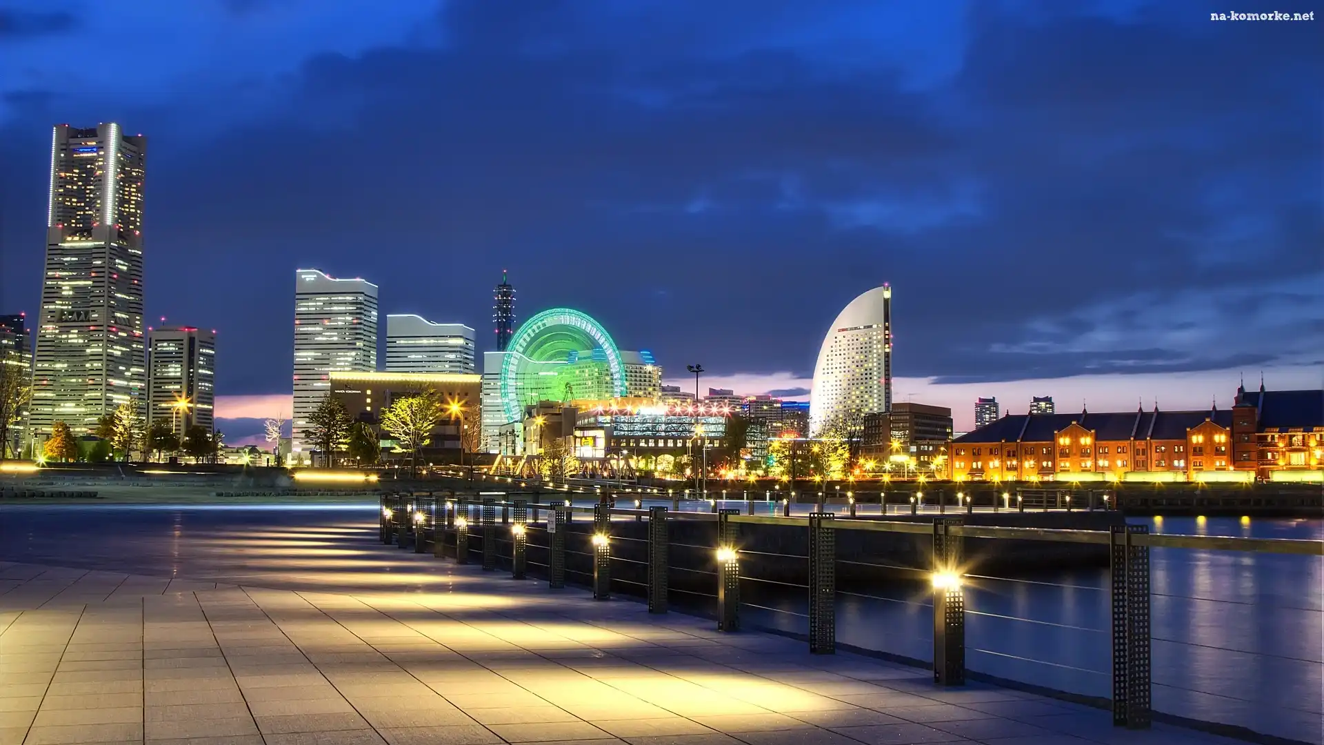 Miasto, Japonia, Panorama, Yokohama na Komórkę