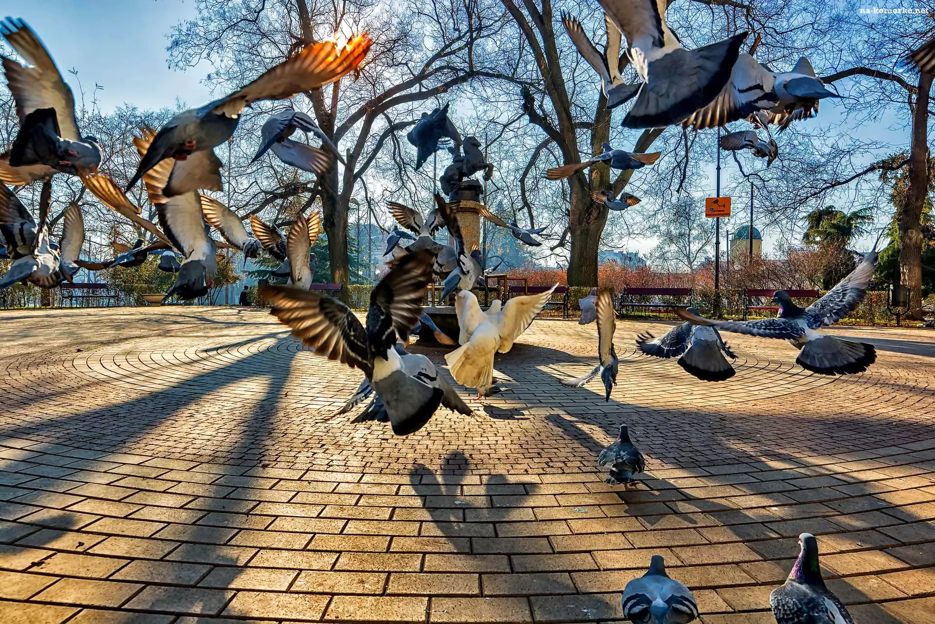 Miasto, Gołębie, Park, Pomnik na Komórkę
