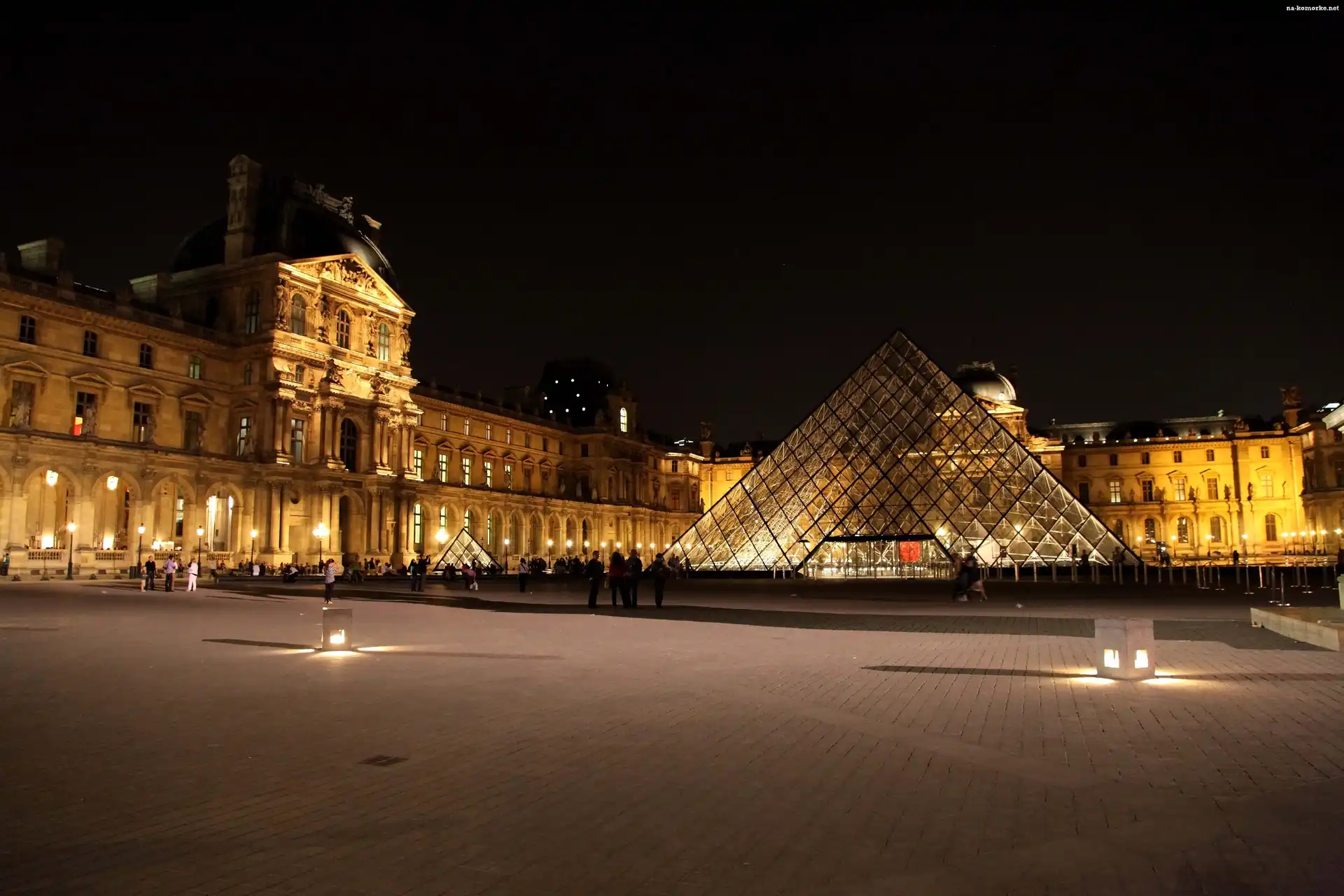 Miasto nocą, Luwr, Muzeum, Paryż, Francja na Komórkę