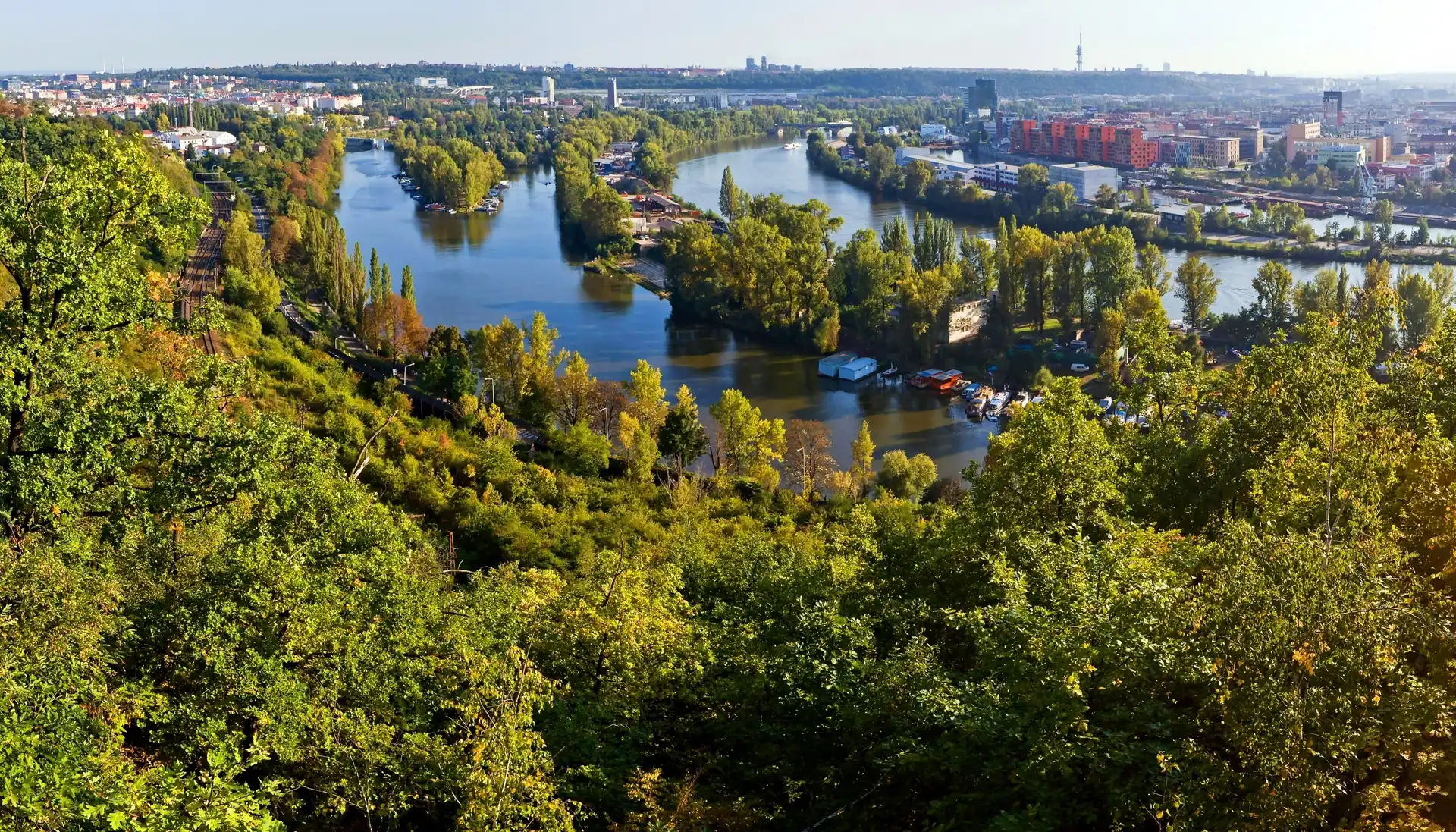 Miasto, Panorama, Rzeka, Drzewa na Komórkę