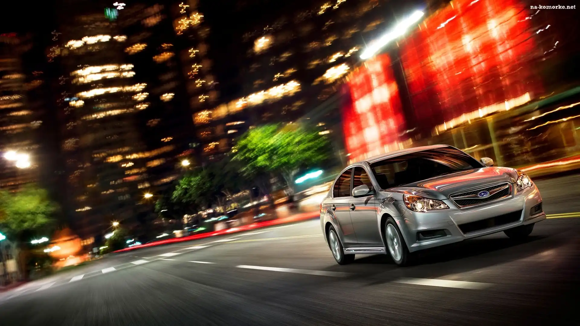 Miasto, Samochód, Srebrny, Noc, Subaru, Ulica na Komórkę