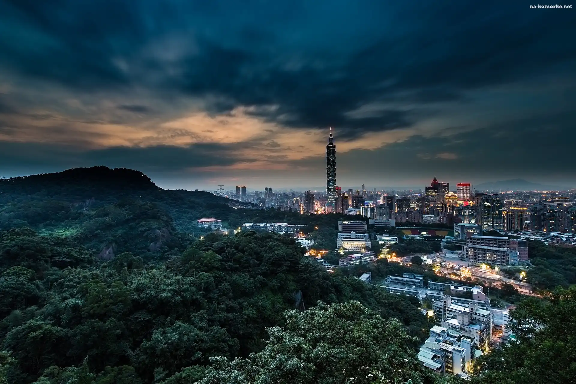 Miasto, Tajwan, Chiny, Panorama, Tajpej, Noc na Komórkę