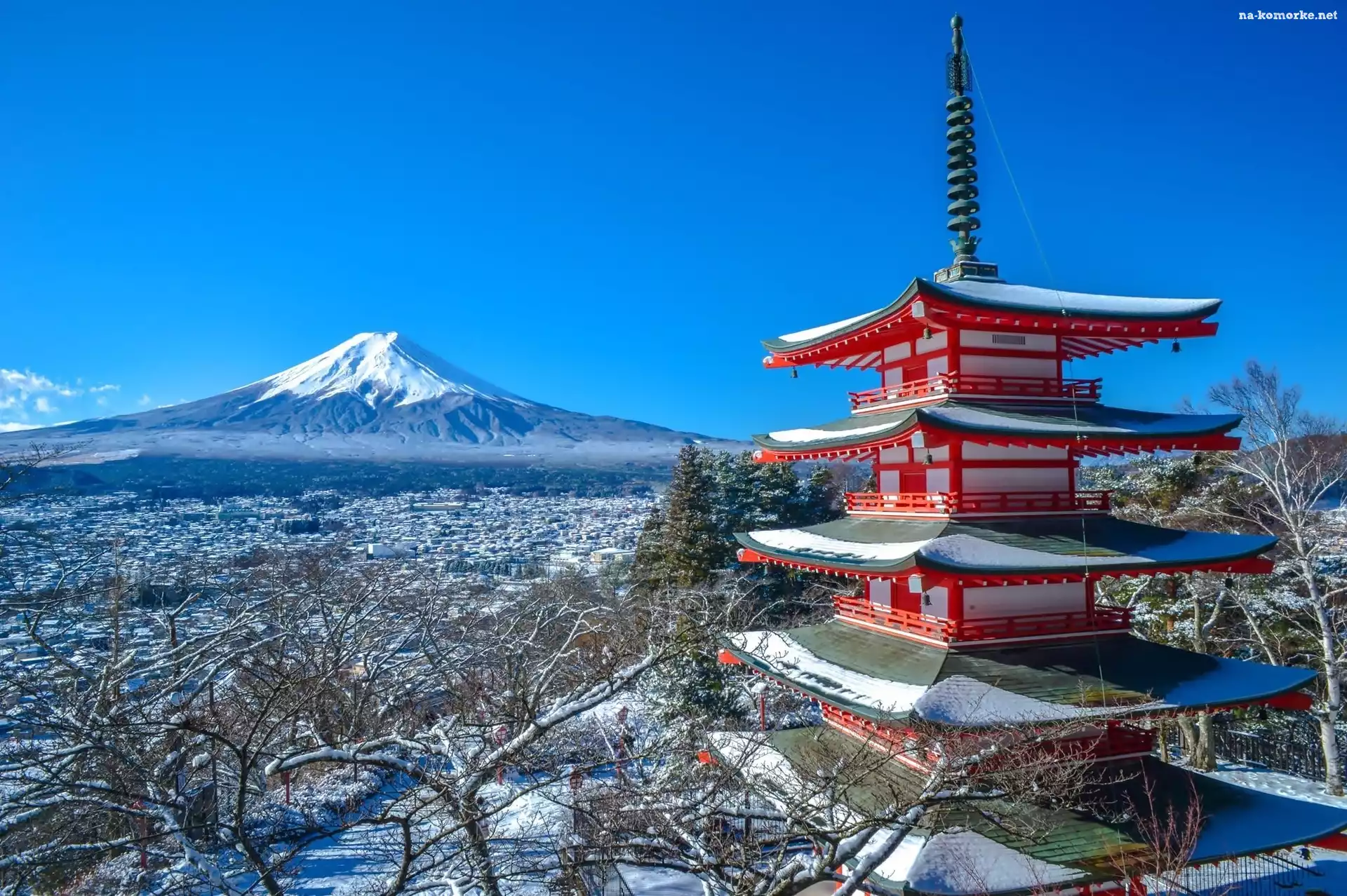 Miasto, Fudżi, Świątynia, Japonia, Wulkan, Zima na Komórkę