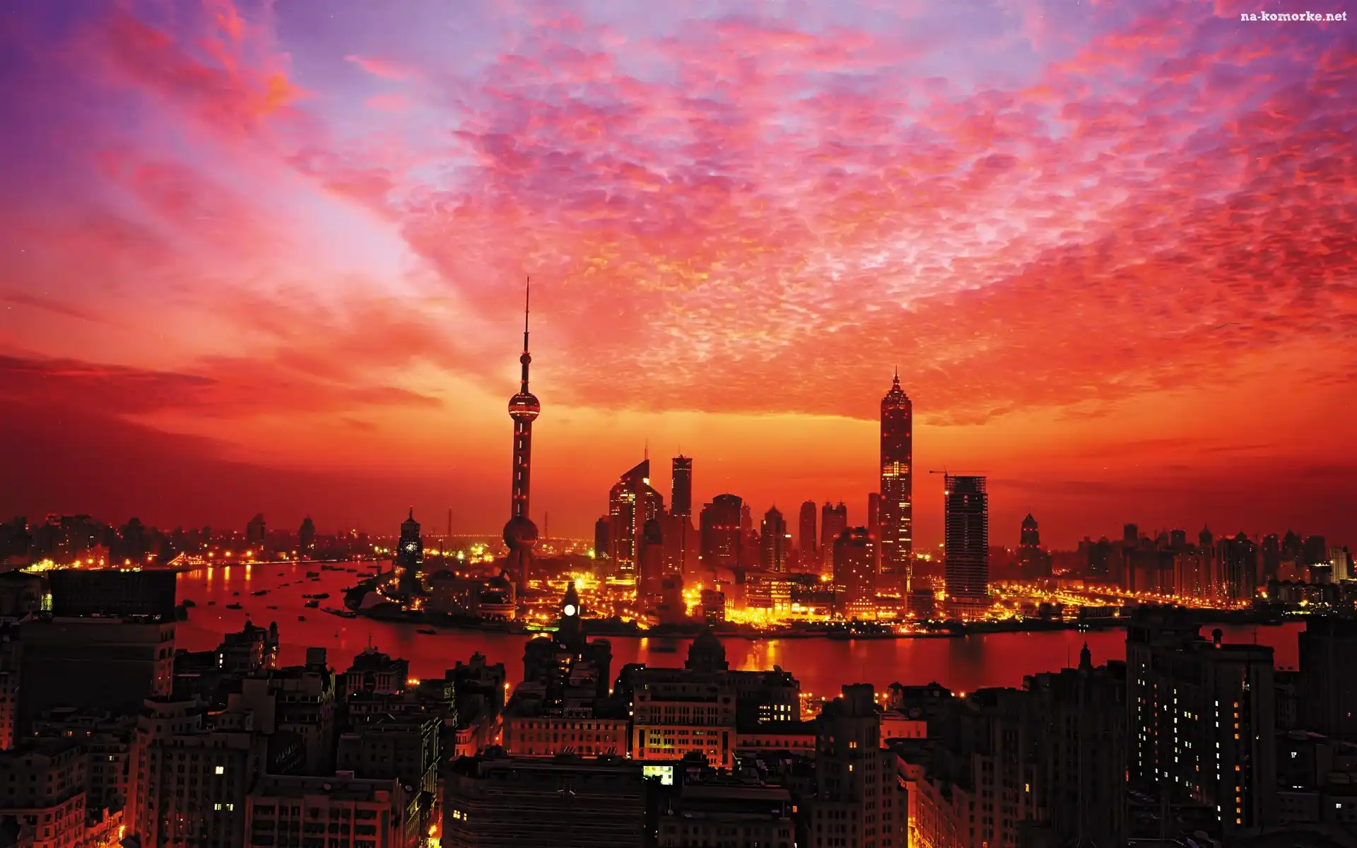 Miasto, Piękne, Chmury, Zachód, Słońca na Komórkę