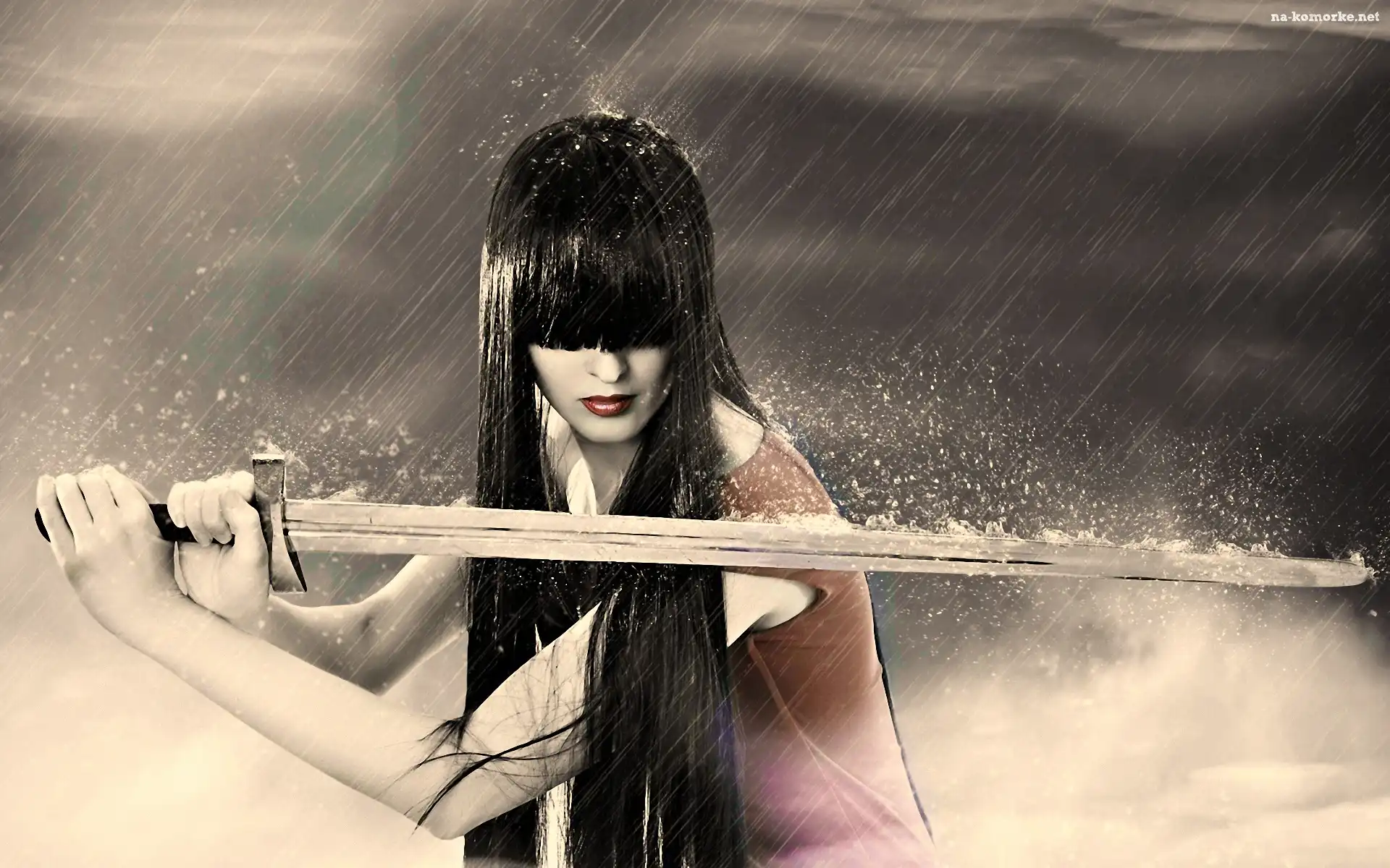 Kobieta, Miecz, Deszcz na Komórkę