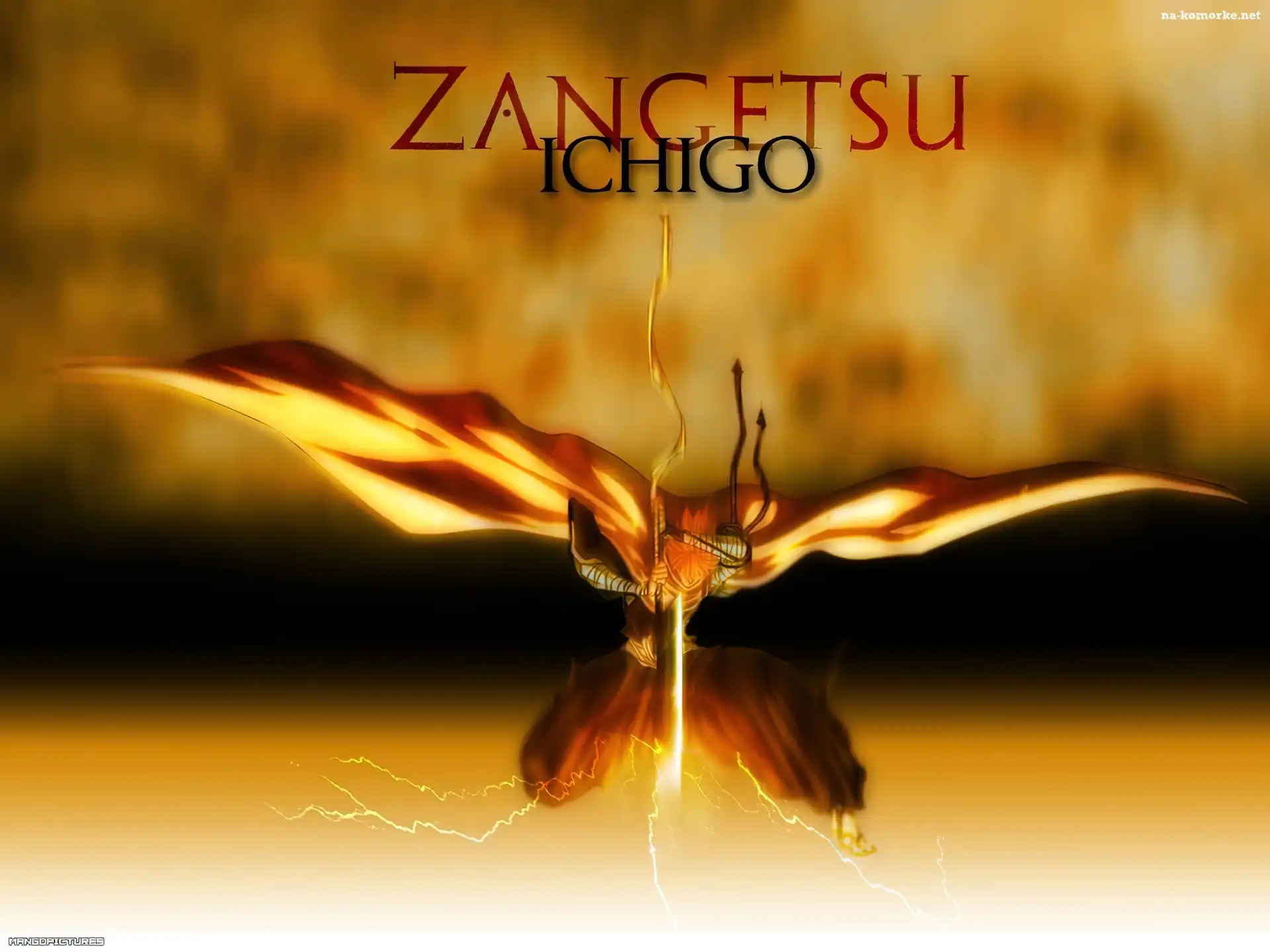 miecz, Bleach, napisy, złoto, postać na Komórkę