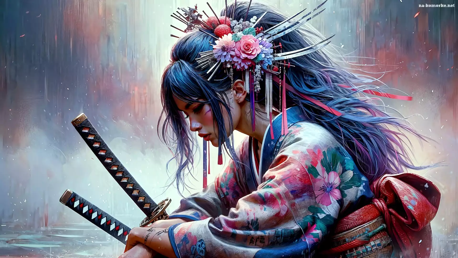 Kobieta, Miecze, Kimono, Samurajka, Grafika na Komórkę