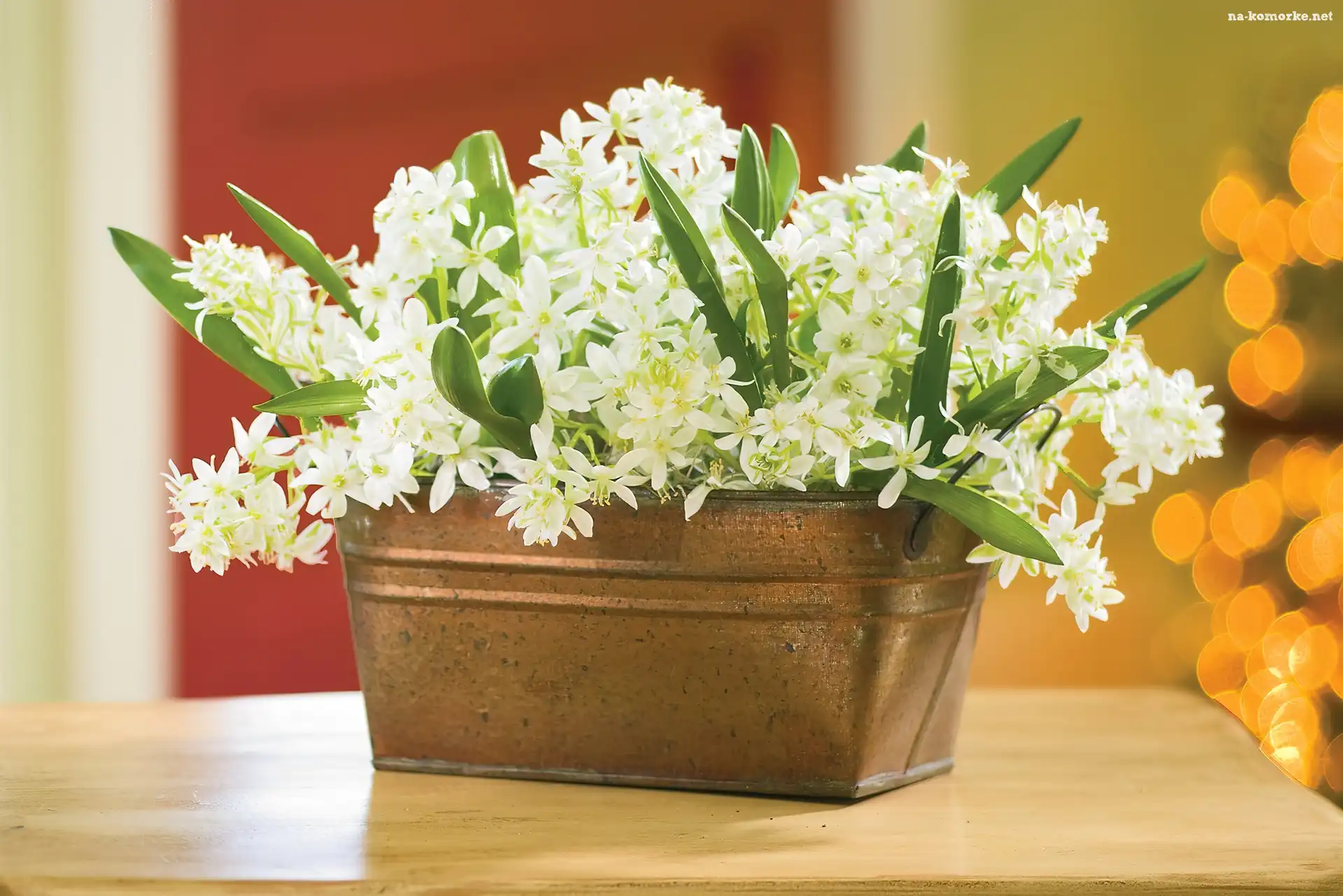 Miedziany, Kwiaty, Wazon, Białe na Komórkę