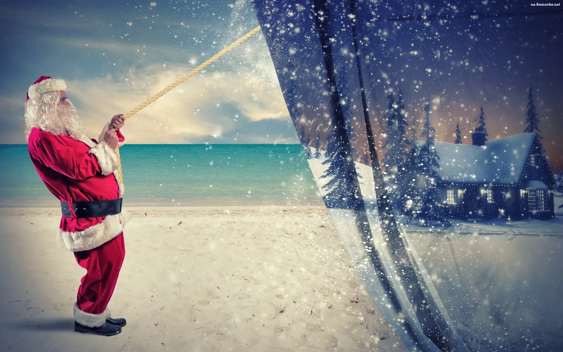 Mikołaj, Święta, Plaża, Morze na Komórkę