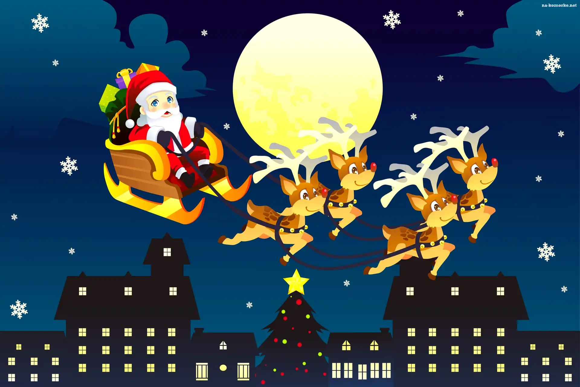 Mikołaj, Noc, Sanie, Miasto na Komórkę