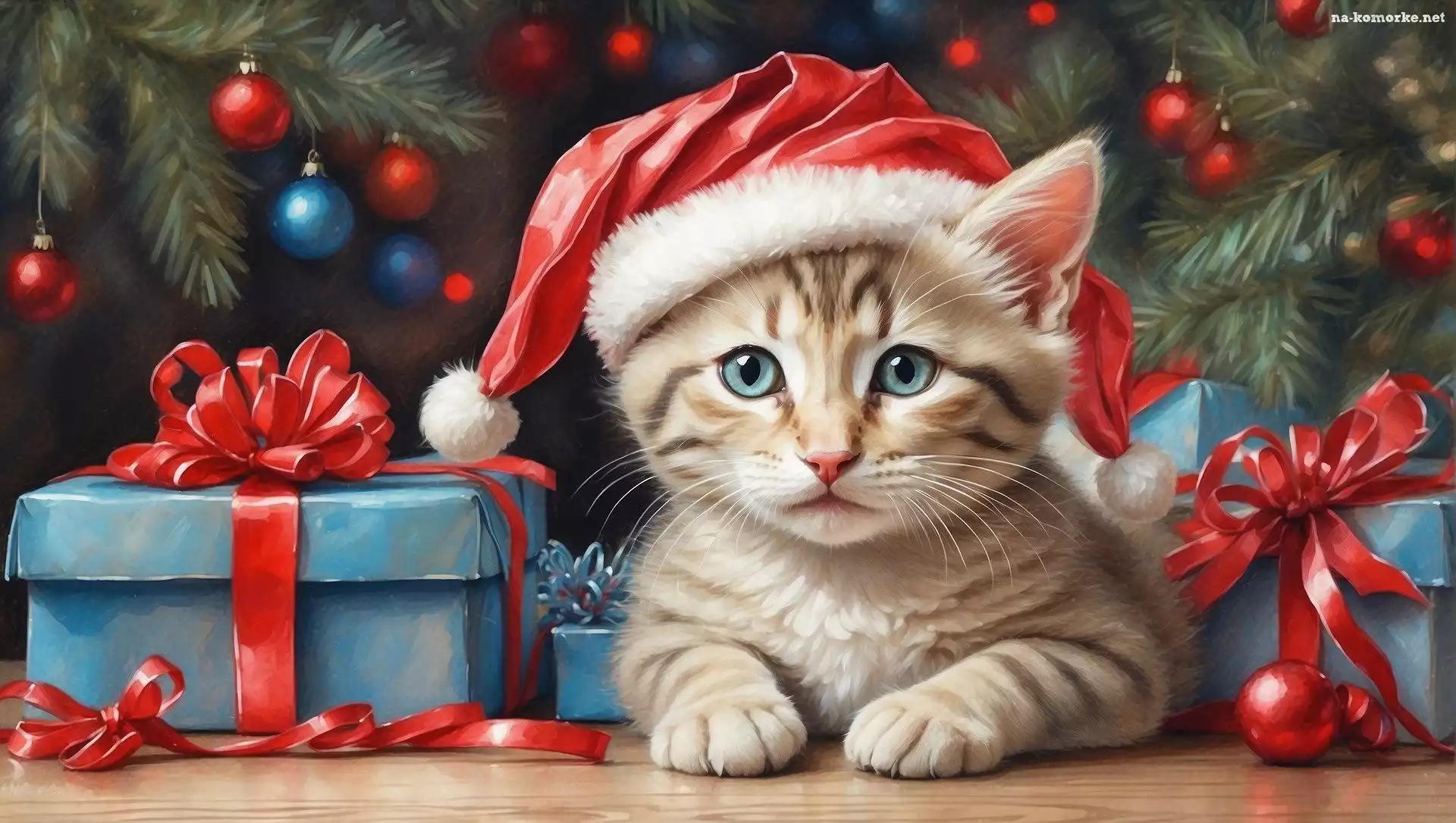 Kot, Mikołaja, Choinka, Czapka, Prezenty na Komórkę