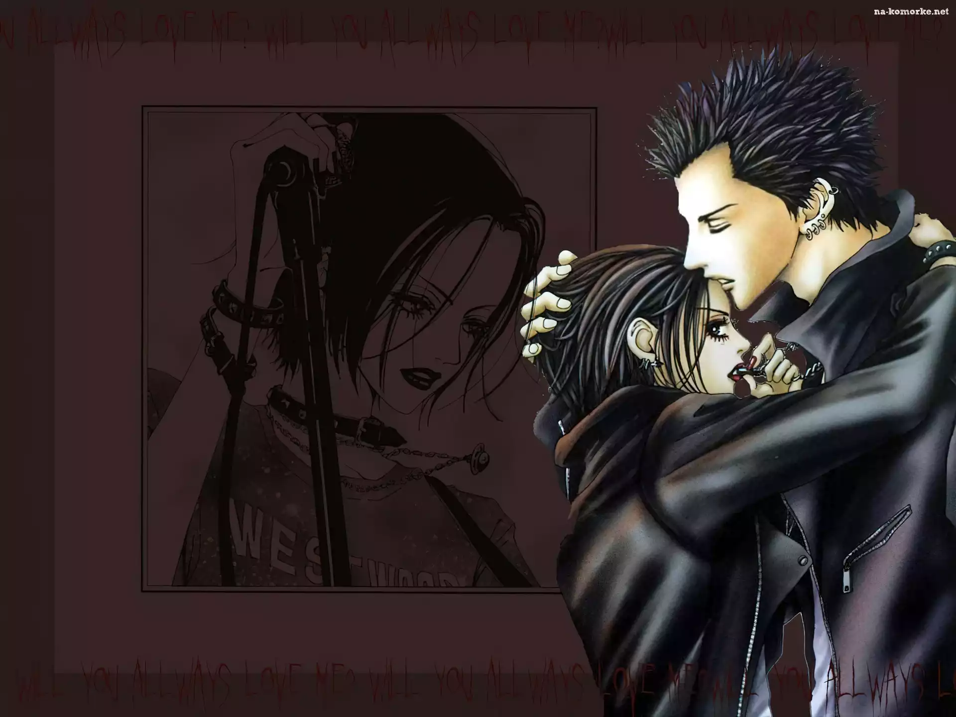 Nana, Anime Nana, Hachi Nana, latarnia, budynek Nana, Nana Osaki, płaszcz Nana, marynarka, instrument Nana, oczy, torebka Nana, kozaki, rękawiczki Nana, gitara, pierścień Nana, czerwone włosy, pasek Nana, anime, dziewczyny Nana, okulary, pałeczki Nana, portret, mikrofon Nana, Papieros