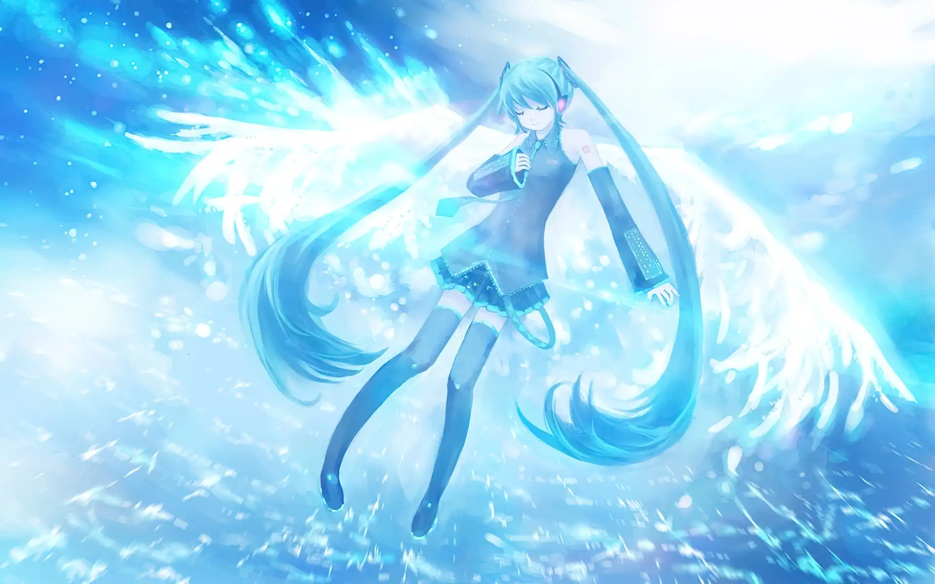 Hatsune Miku Miku Hatsune, Vocaloid Hatsune Miku, Włosy, Anioł Vocaloid Luka, Woda, Vocaloid Vocaloid, Miku Hatsune Hatsune Miku, Grafika Luka, Meiko, Vocaloid Hatsune, Skrzydła Kolorowa, Hatsune Miku Vocaloid, Wianek, Luka Megurine, Balonik Miku Hatsune, Oczy, Słuchawki, Niebieskie Miku Hatsune Kagamine Rin