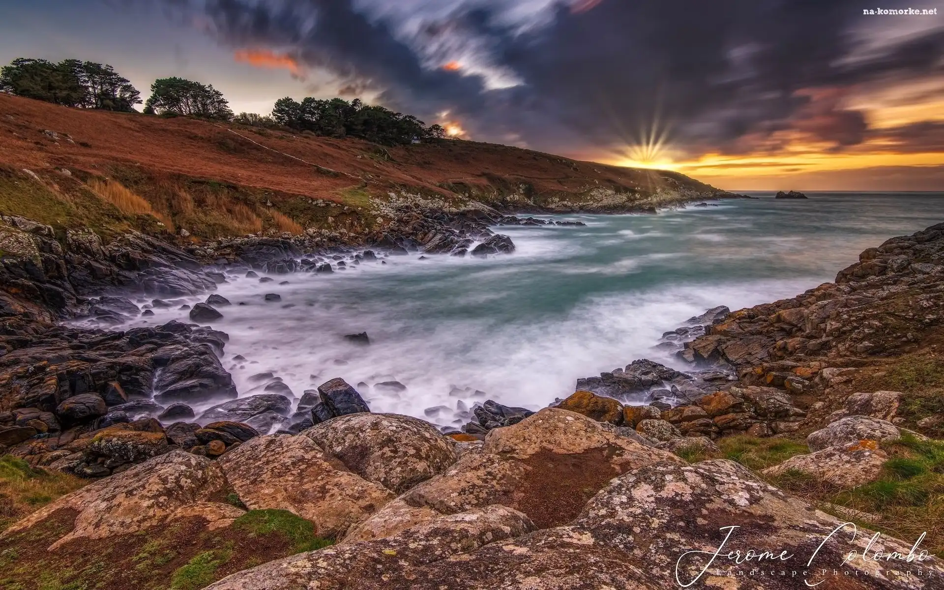 Przylądek, Francja, Zatoka, Pointe du Millier, Chmury, Bretania, Wschód słońca, Morze, Skały na Komórkę |