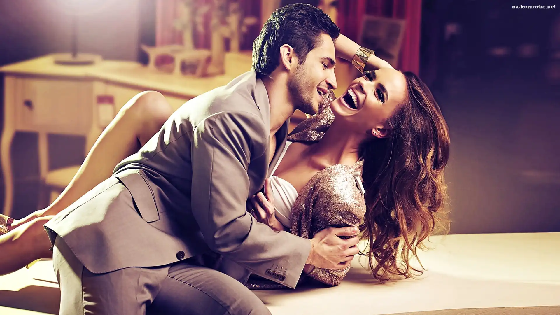 Miłość, Mężczyzna, Uśmiechnięta, Kobieta na Komórkę
