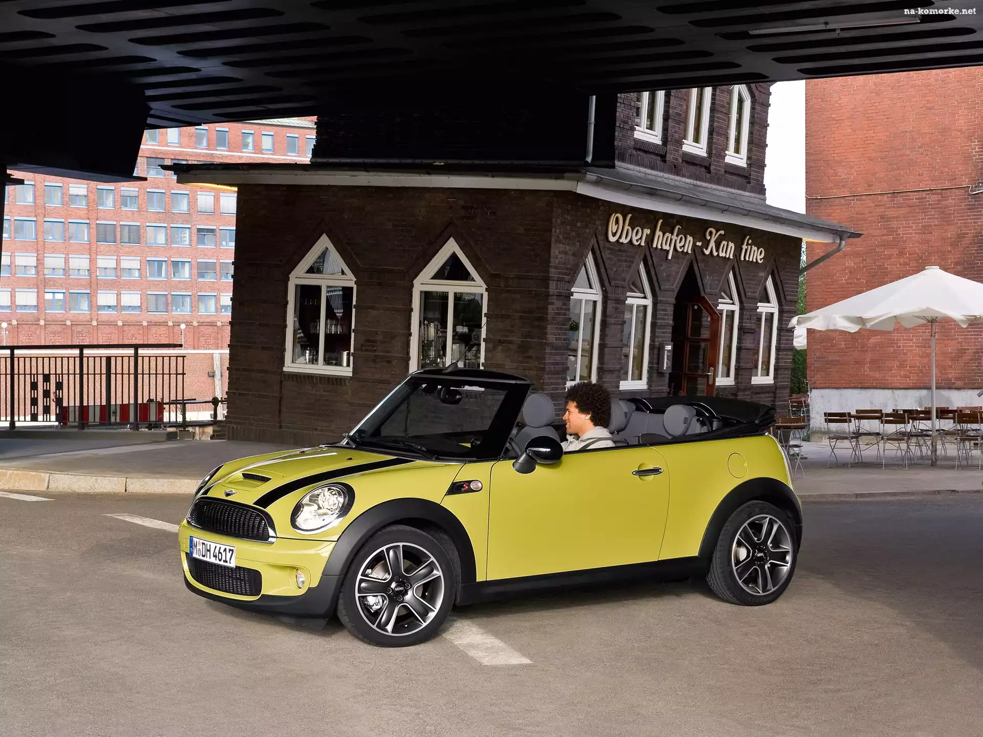 Mini Cabrio, Prędkościomierz Mini Cabrio, Fotele, Składane, Tylne Mini Cabrio, Kamienica, Stara Mini Cabrio, Alufelgi, Błotnik Białe, Mini One Cabrio Mini Cabrio, Unikalne, Malowanie Mini Cabrio, Nadwozia, Linia BMW Mini One Cabrio Mini Cooper Cabrio, Reflektory Mini Cooper Cabrio, John Works Grafitowy, Mini Cooper S Cabrio Mini Cabrio, Kierownica Żółte, Mini Cabrio Mini Cooper Cabrio, Czarne, Pasy