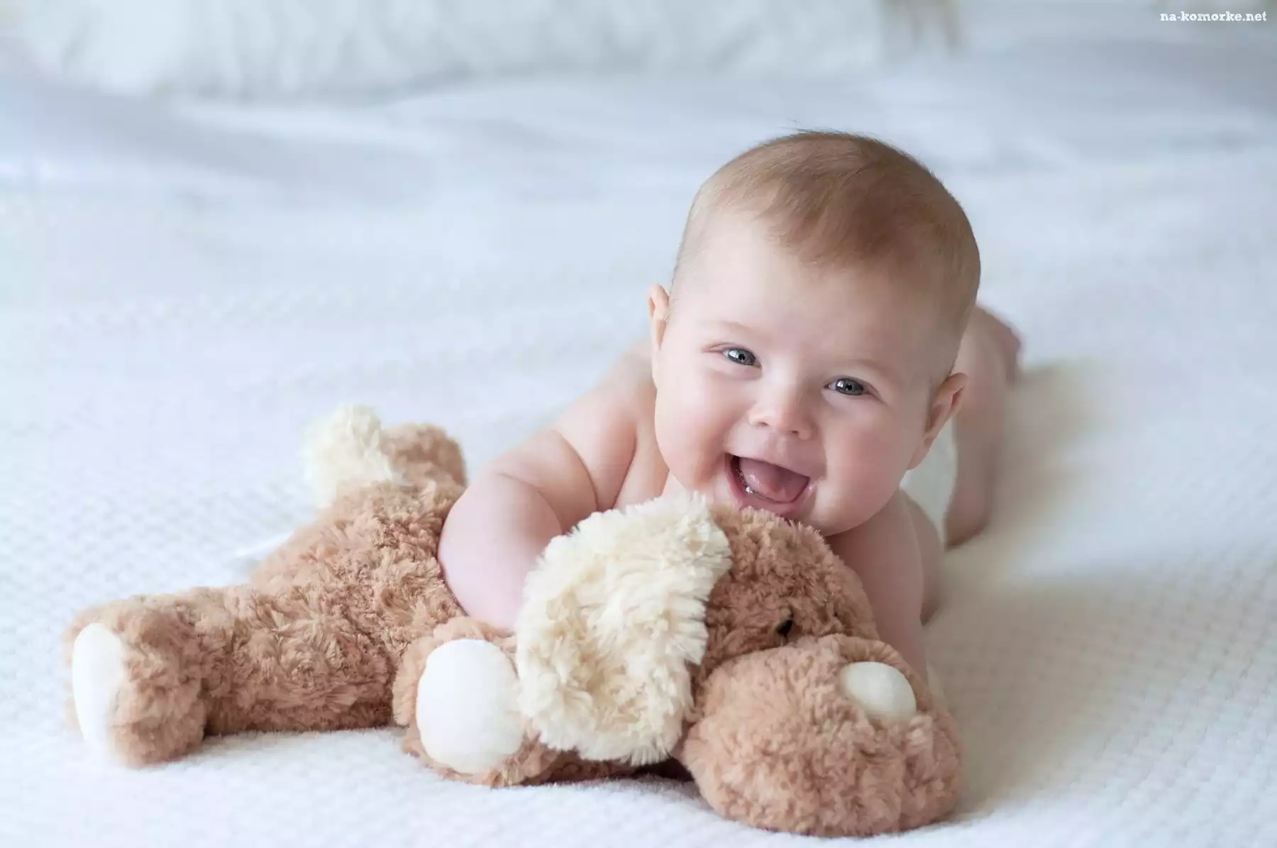 Miś, Małe, Roześmiane, Dziecko, Pluszowy na Komórkę