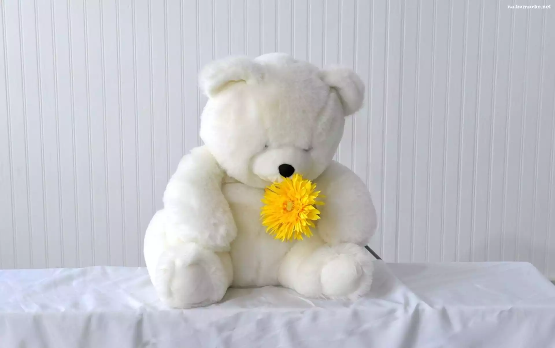 Biały, Misio, Kwiatek na Komórkę