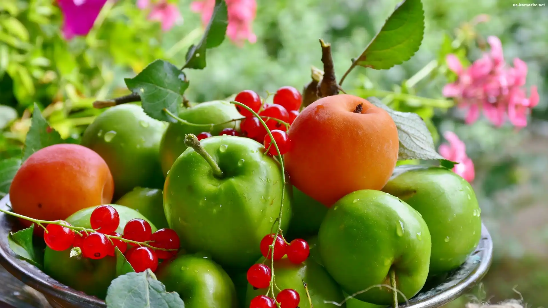 Miska, Owoce, Jabłka, Morele, Porzeczki na Komórkę