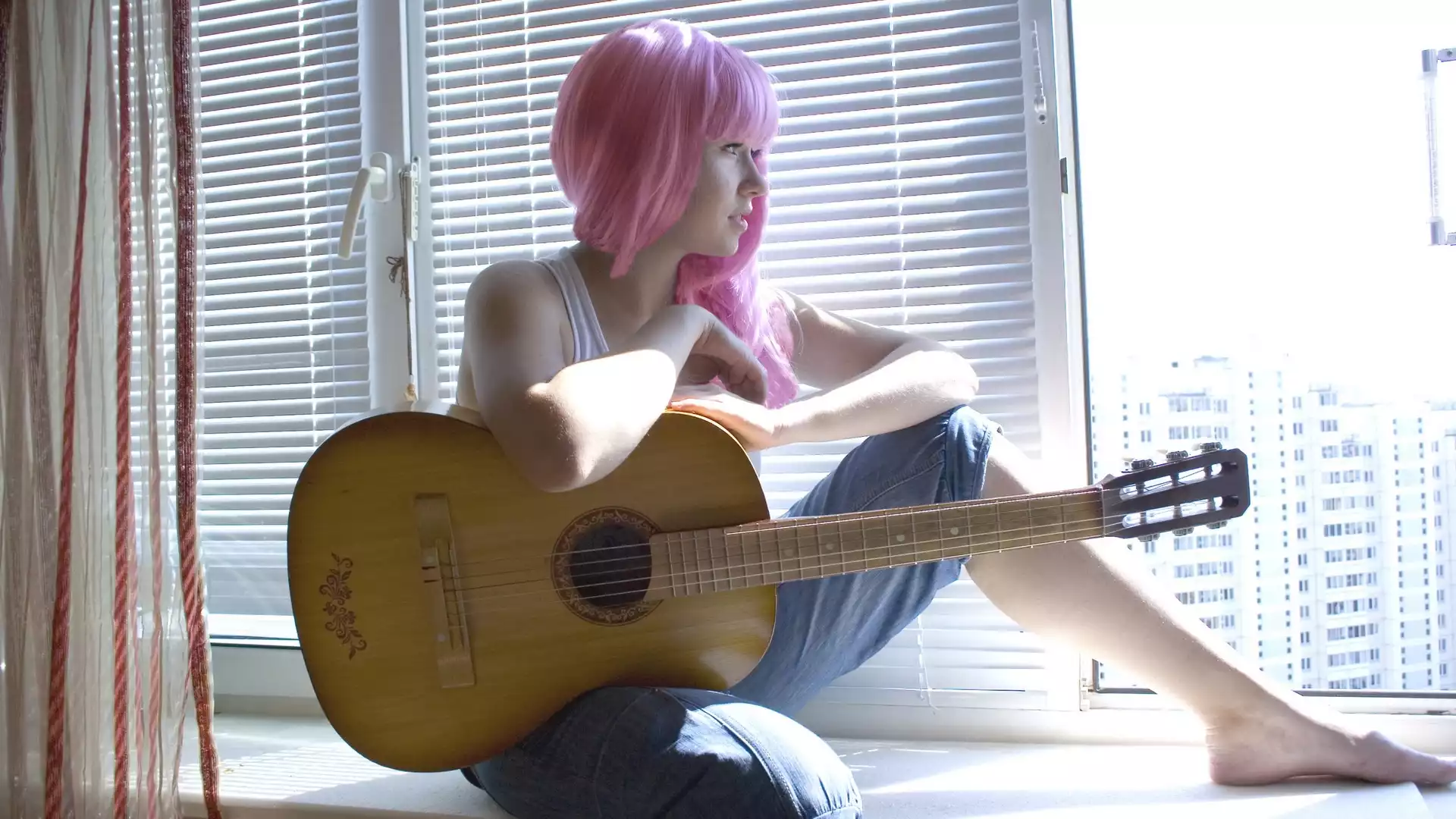 Młoda, Okno, Dziewczyna, Gitara na Komórkę