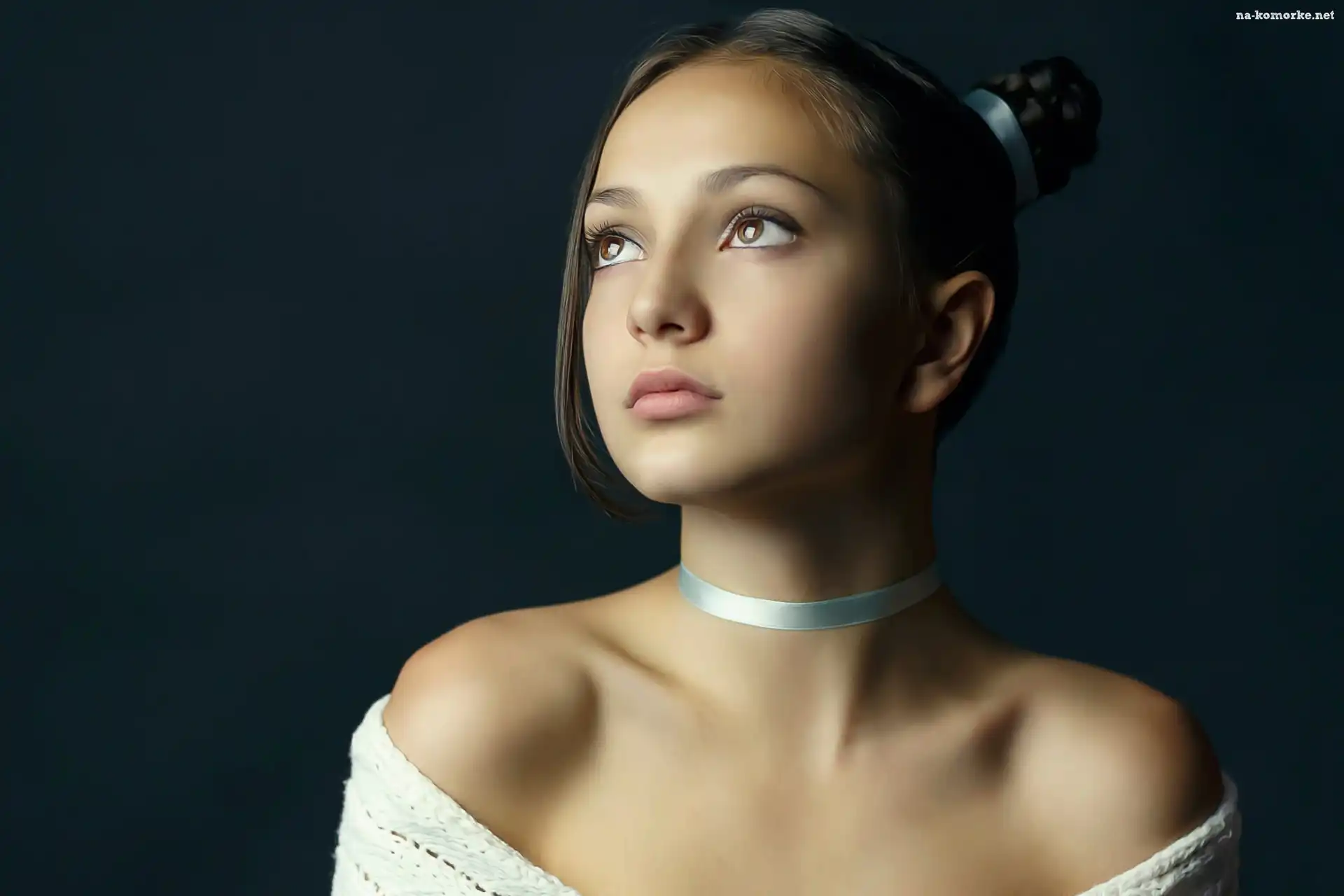 Młoda, Dekolt, Kobieta, Twarz na Komórkę