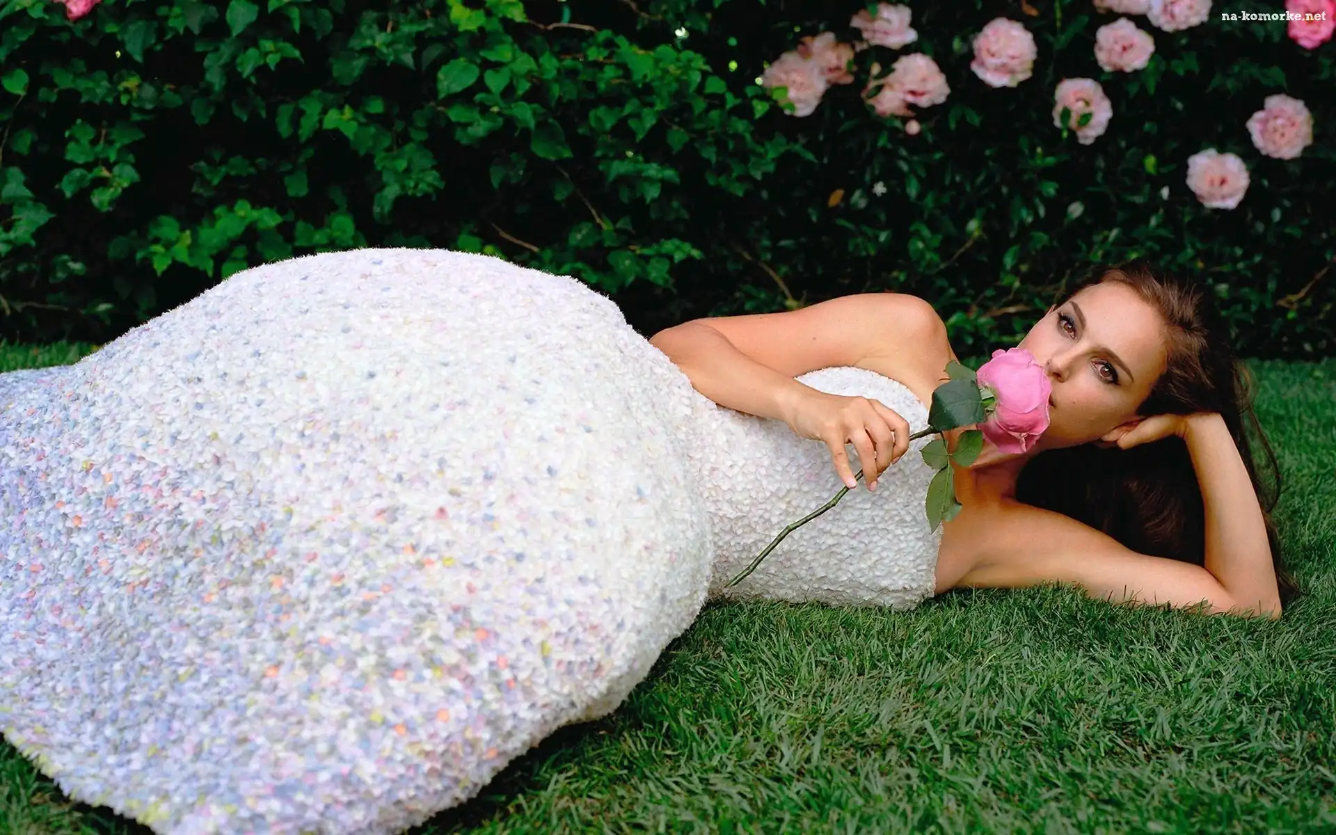 Panna młoda, Natalie Portman, Biała, Suknia, Róża na Komórkę