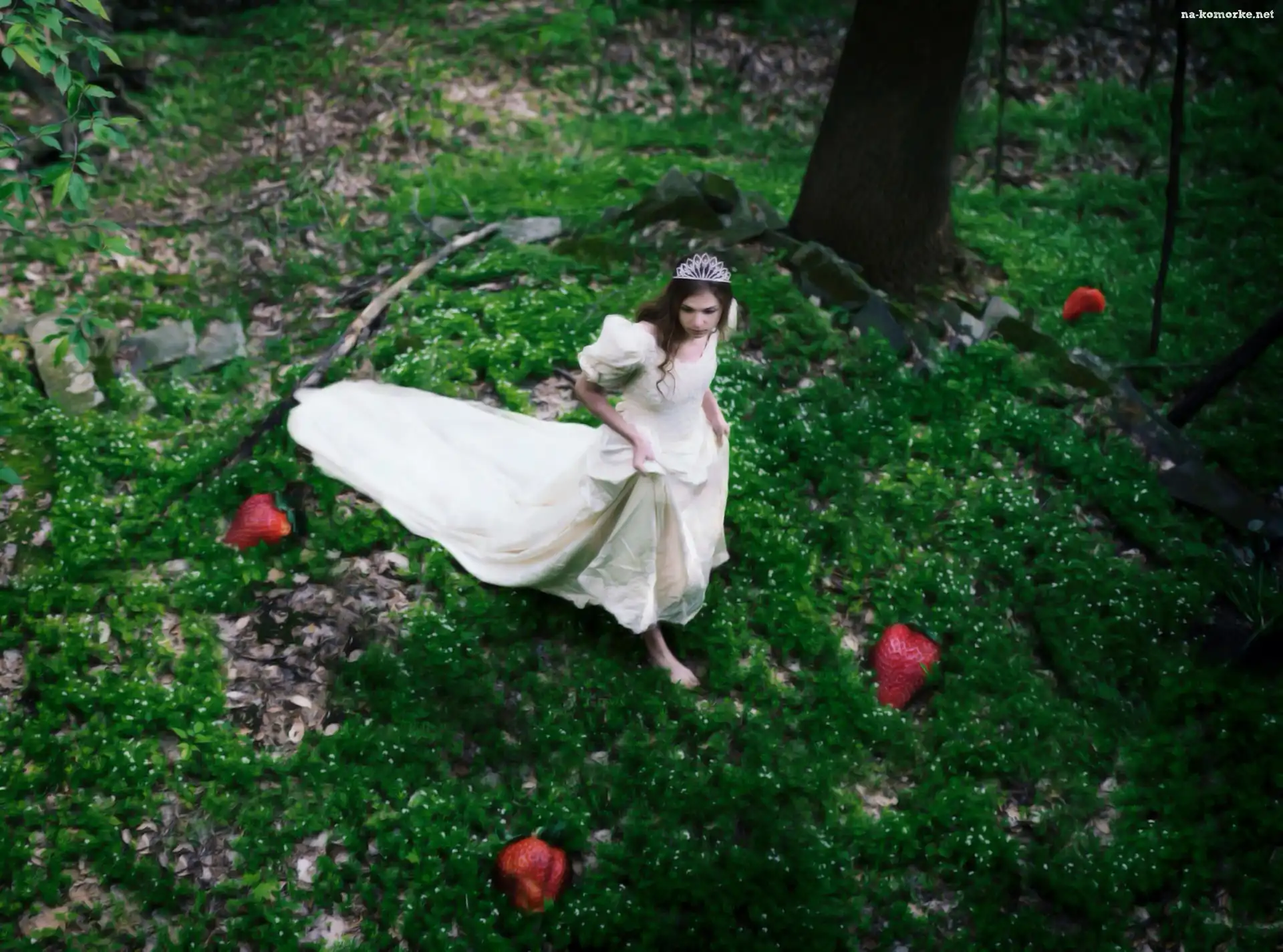Panna młoda, Biała, Kobieta, Las, Suknia, Truskawki na Komórkę