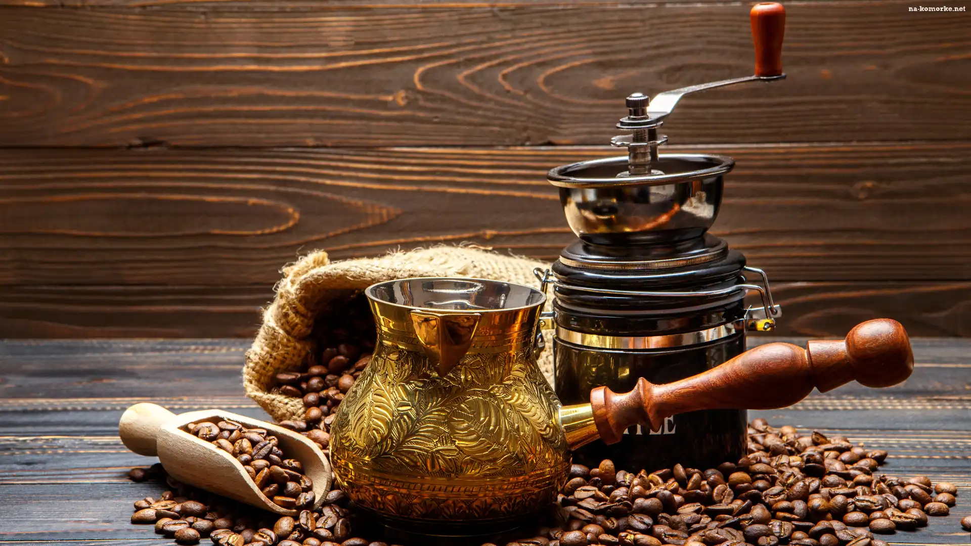 Młynek, Worek, Kawa, Deski, Tygielek, Ziarna na Komórkę