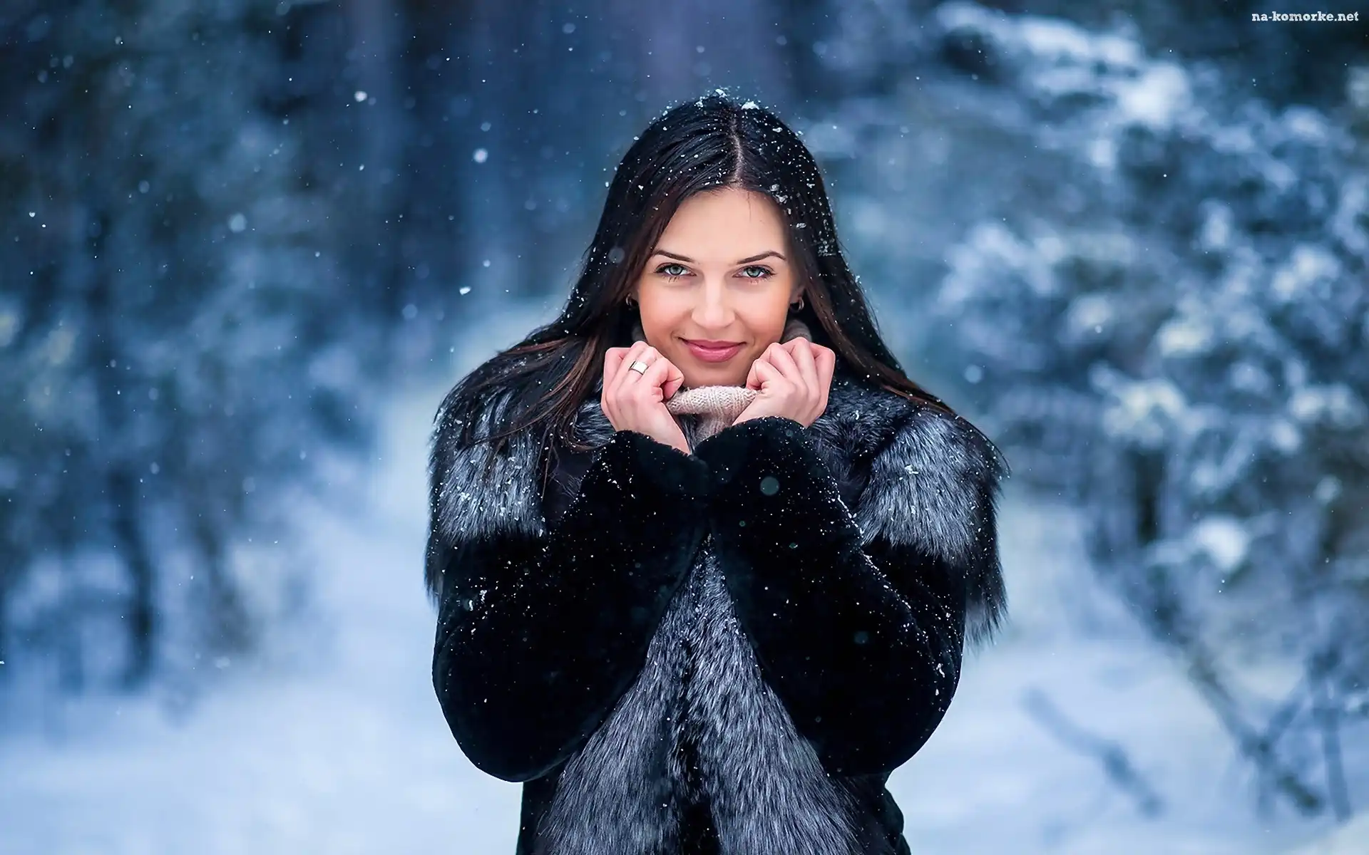 Modelka, Zima, Brunetka, Makijaż na Komórkę
