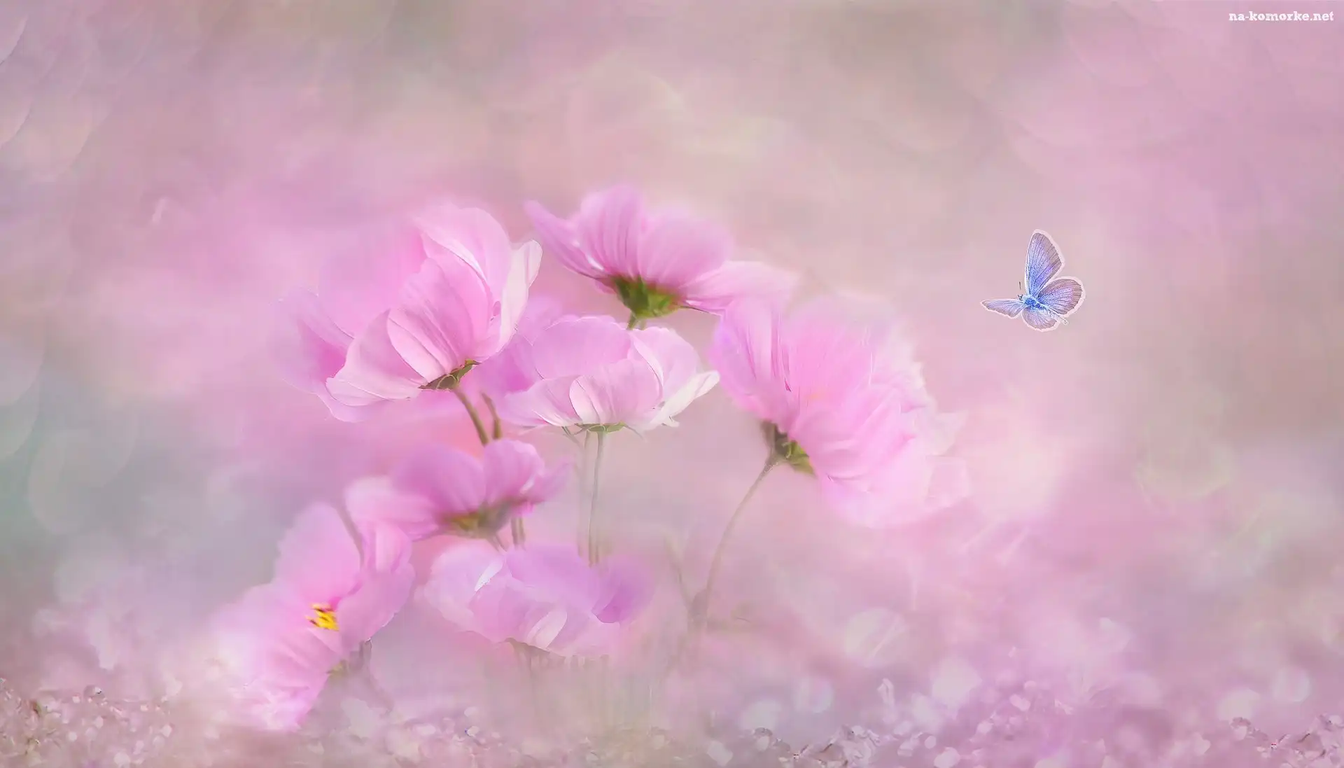 Modraszek ikar, Różowe, Kwiaty, Kosmea, Motyl na Komórkę