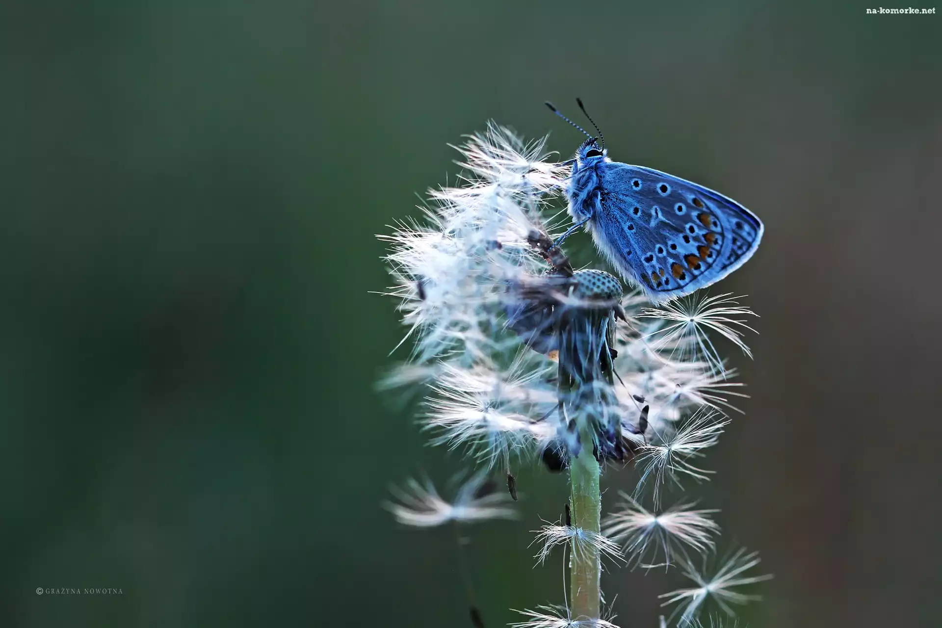 Modraszek, Mniszek Pospolity, Motyl, Dmuchawiec na Komórkę