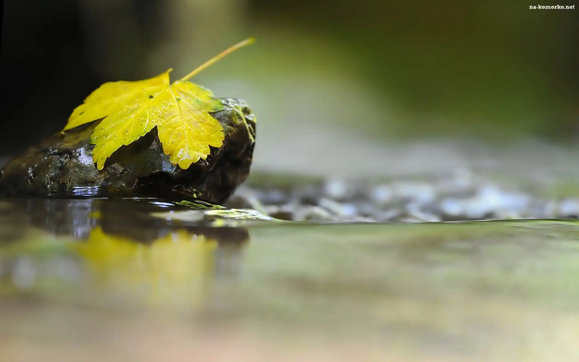 Mokry, Liść, Kamień, Żółty na Komórkę