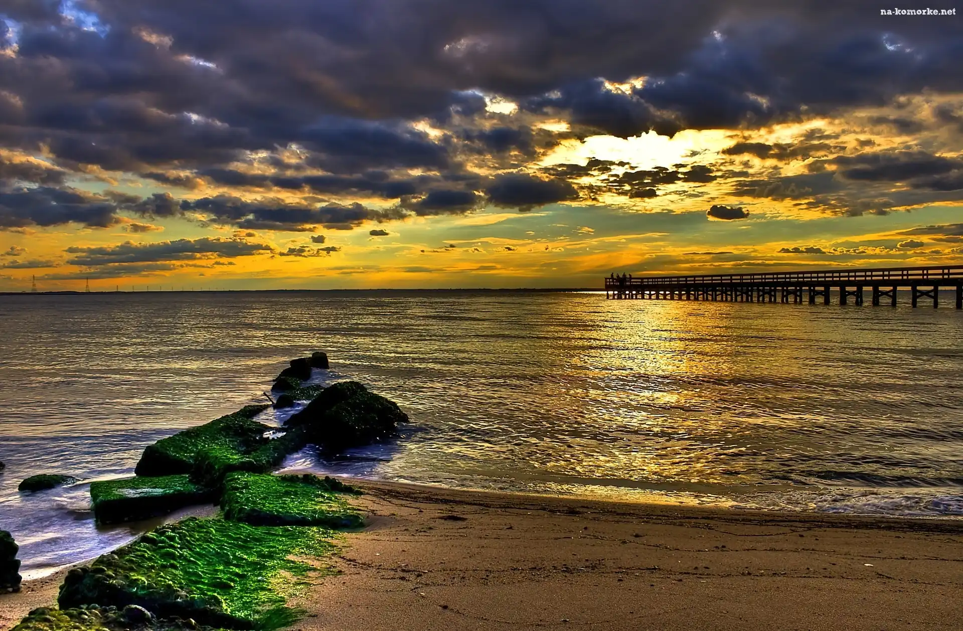 Molo, Morze, Zachód, Słońca, Plaża na Komórkę
