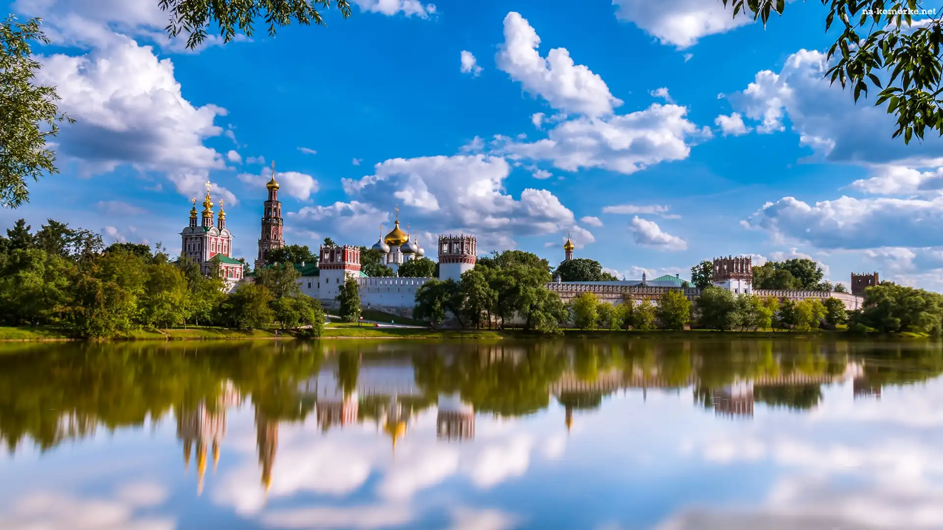 Rosja, Drzewa, Klasztor, Chmury, Moskwa, Monaster Nowodziewiczy w Moskwie, Muzeum, Rzeka Moskwa na Komórkę |