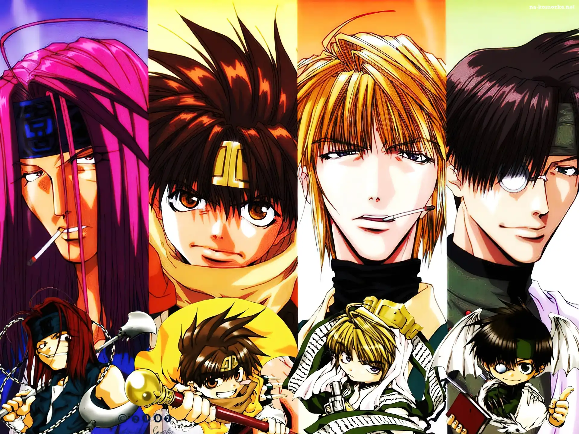 Saiyuki, pióra Saiyuki, sanzo, papieros, genjo Saiyuki, zamieszanie, foch Saiyuki, posąg Saiyuki, liście, ludzie, pistolet Saiyuki, ludzie, okulary, płaszcz Saiyuki, katana i łańcuch Saiyuki, manga, hipis Saiyuki, papieros, ludzie Saiyuki, papieros, postacie, zapalniczka Saiyuki, zdjęcia ludzie, Saiyuki, zdjęcia, plakat, postacie Saiyuki, ptaki, facet Saiyuki, napisy, okulary
