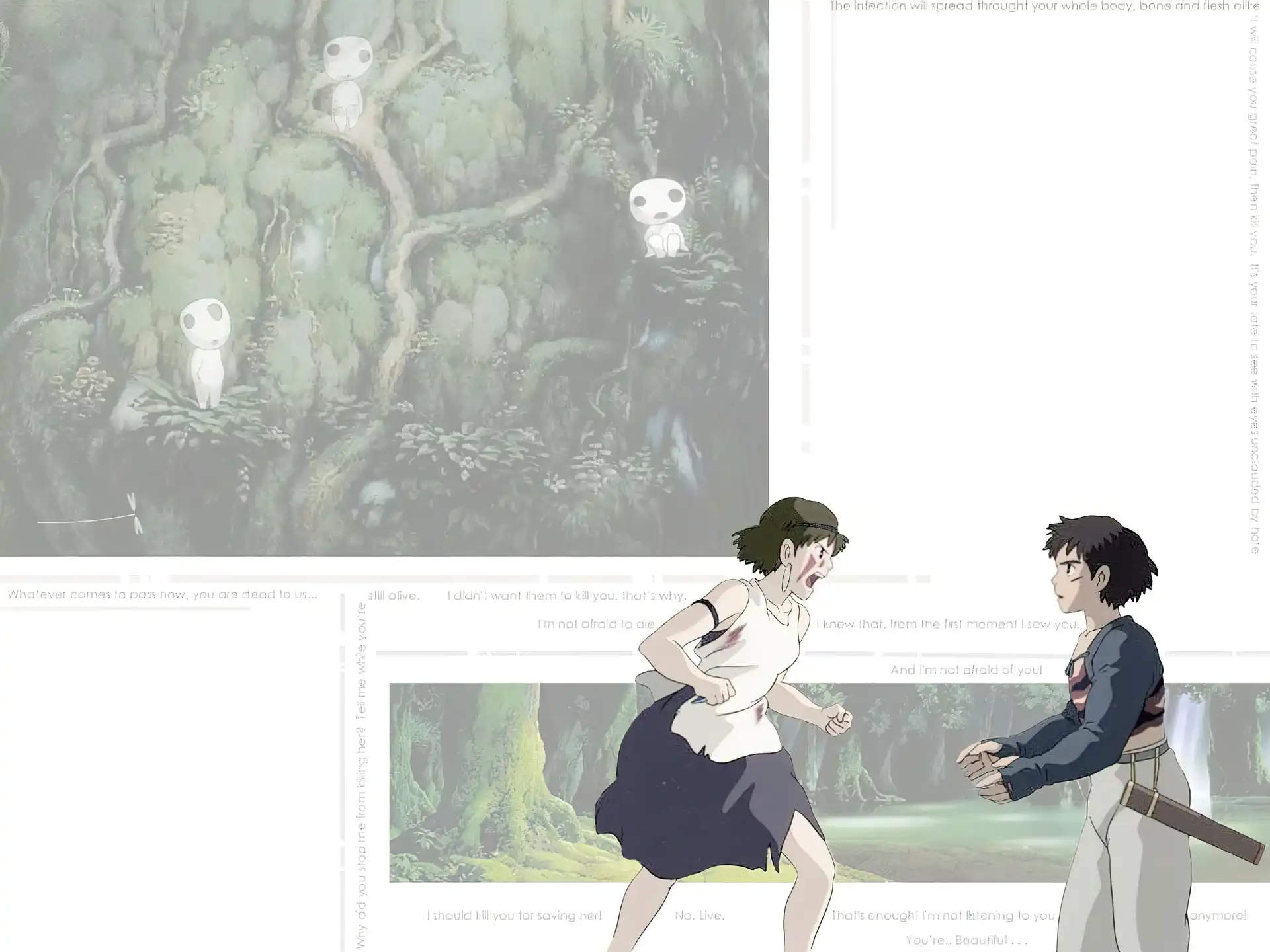 Mononoke Hime, las, kłótnia Mononoke Hime, wodospad, domek Mononoke Hime, chłopak, zieleń Mononoke Hime, Manga, Anime Mononoke Hime, miecz