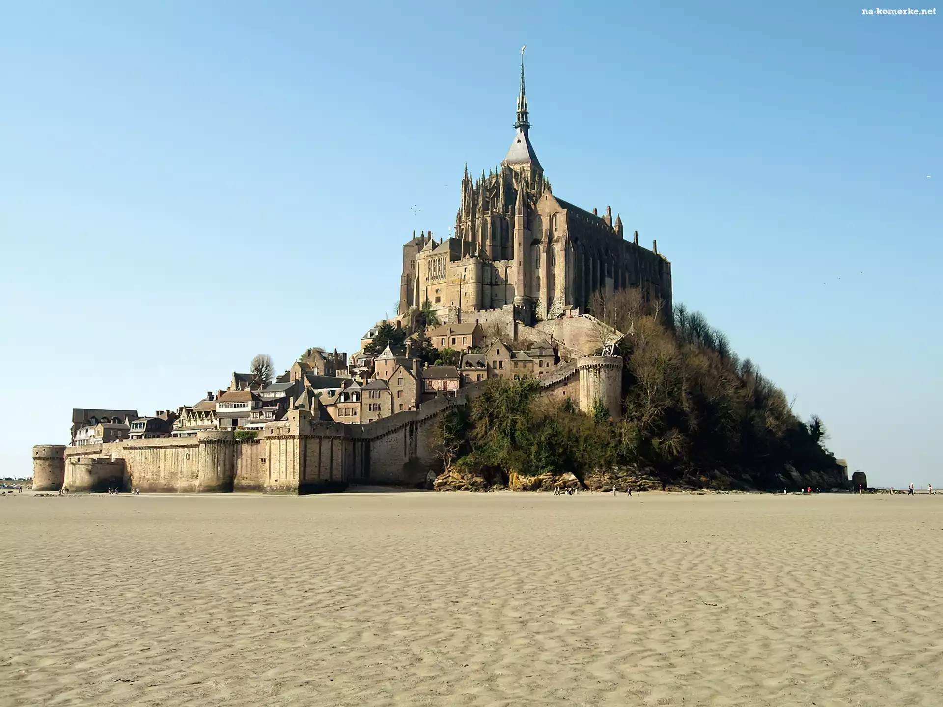 Klasztor, Mont Saint-Michel, Francja, Wyspa, Odpływ na Komórkę
