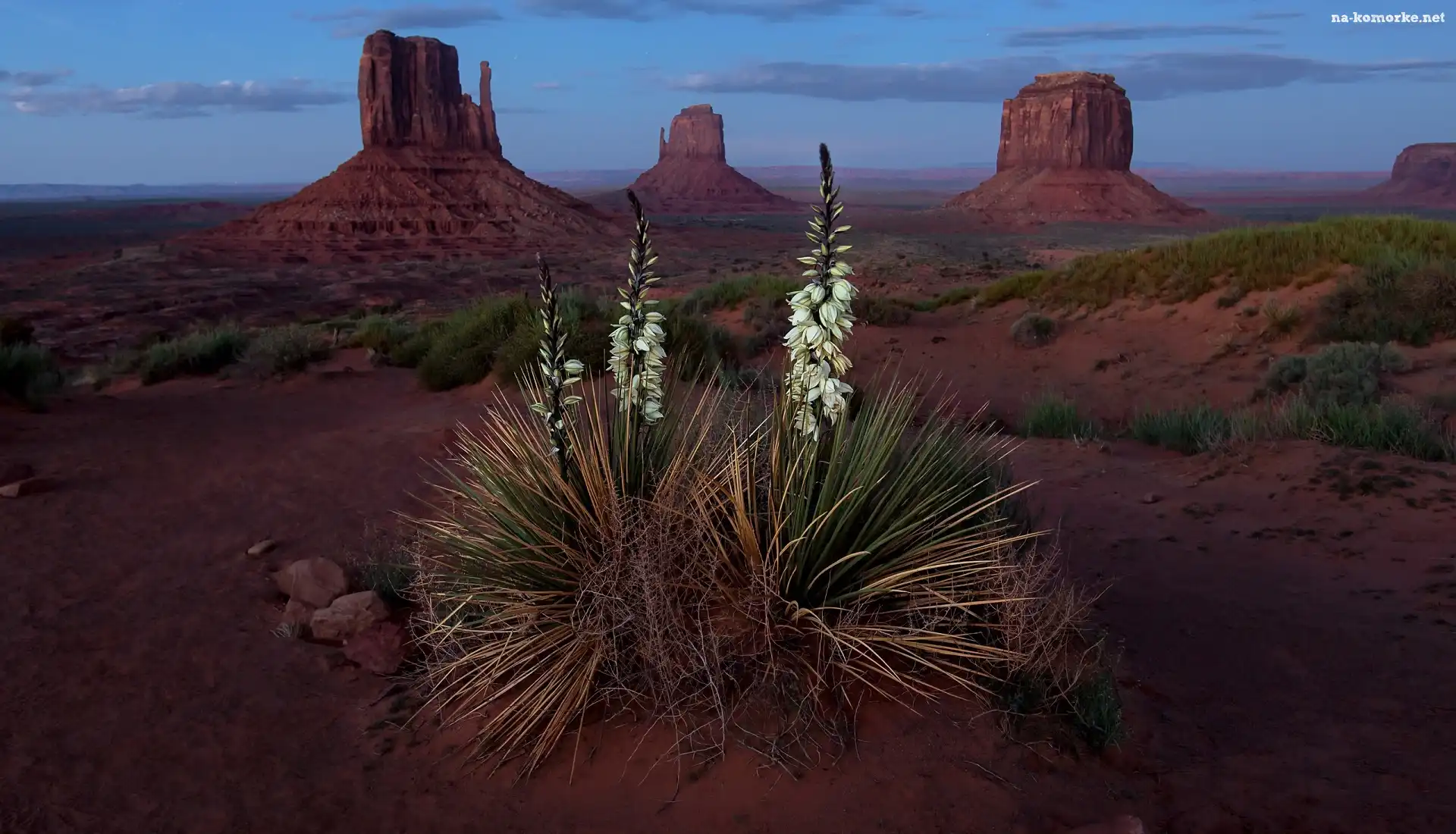 Monument Valley, Wyżyna Kolorado, Kwiat, Rezerwat Indian Navaho, Stany Zjednoczone Juka karolińska, Dolina Pomników, Stan Utah, Skały, Juka karolińska na Komórkę |