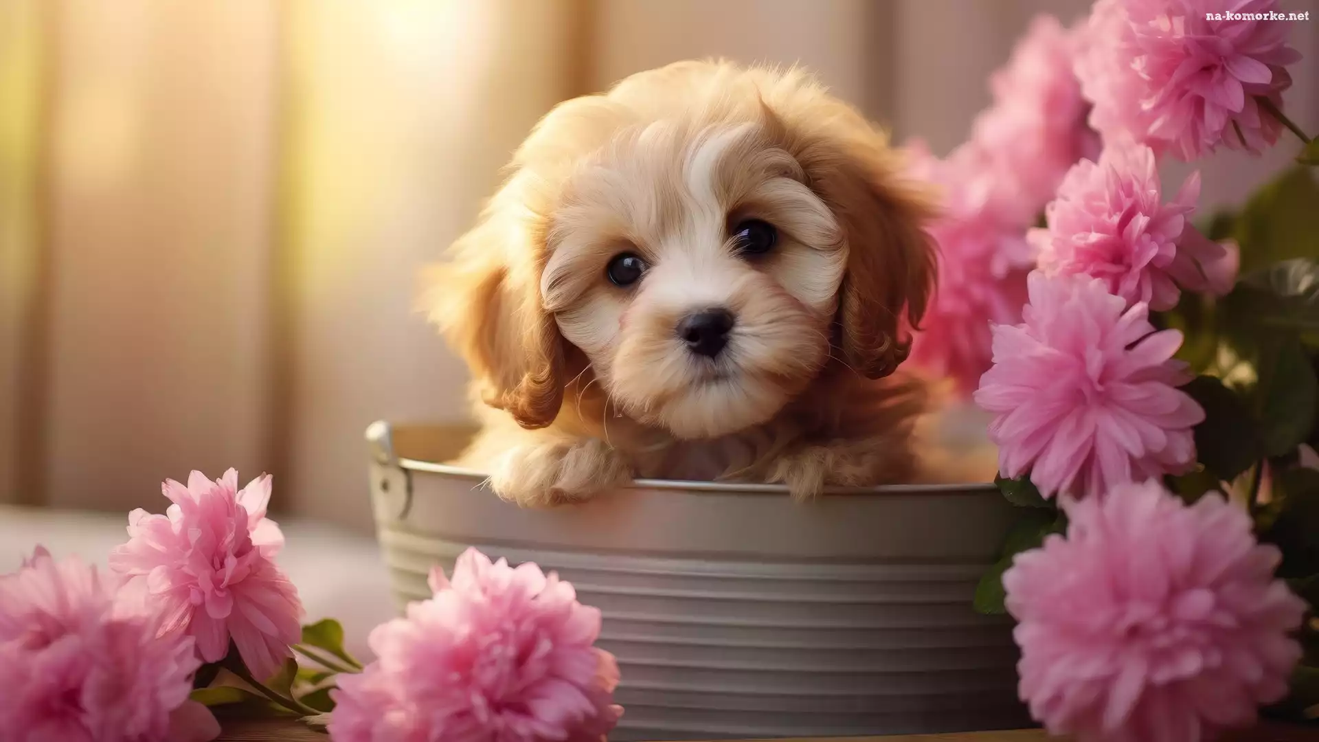 Kwiaty, Szczeniak, Pies, Mordka na Komórkę