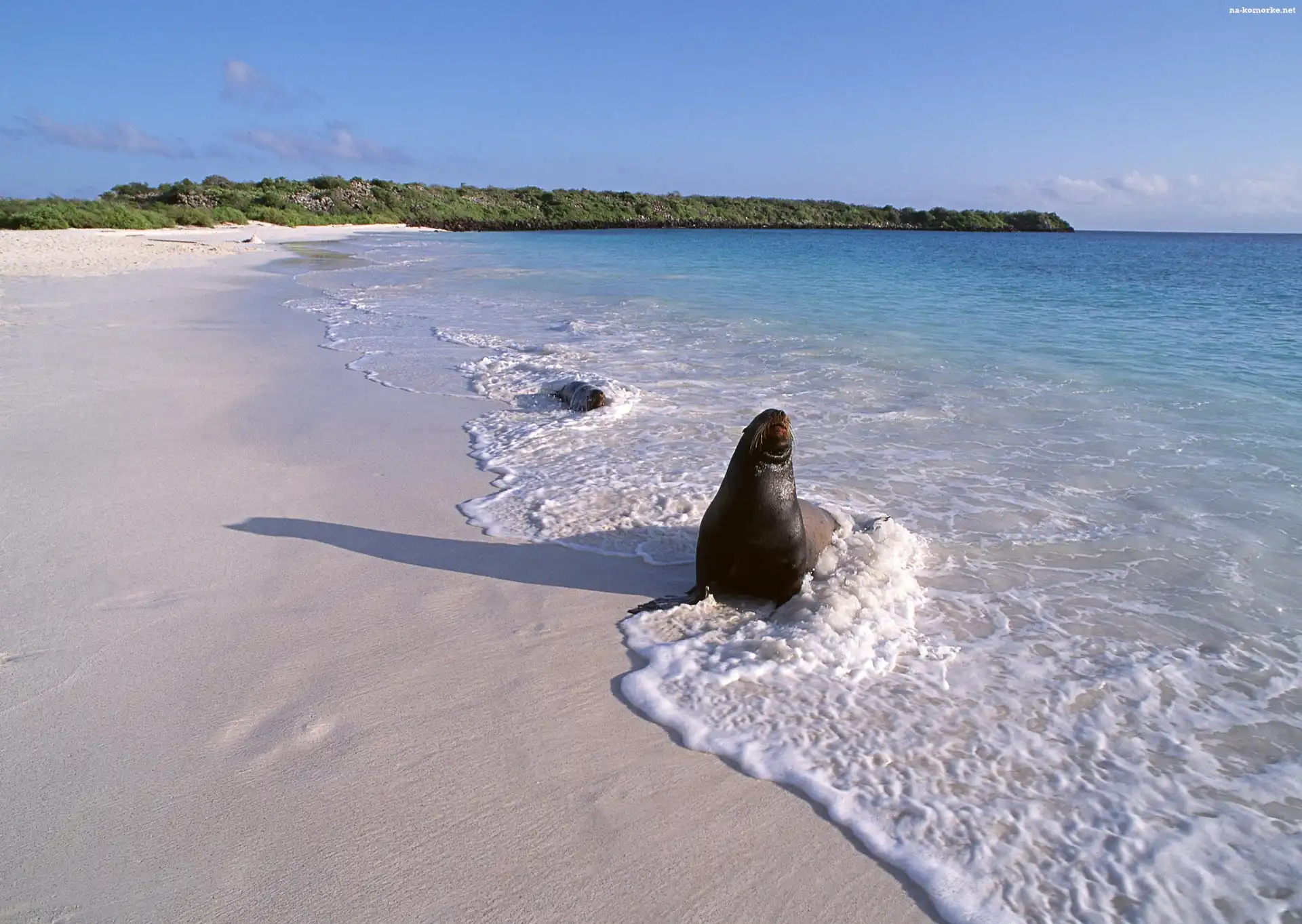 Morza, Dwie, Szare, Foczki, Brzeg na Komórkę