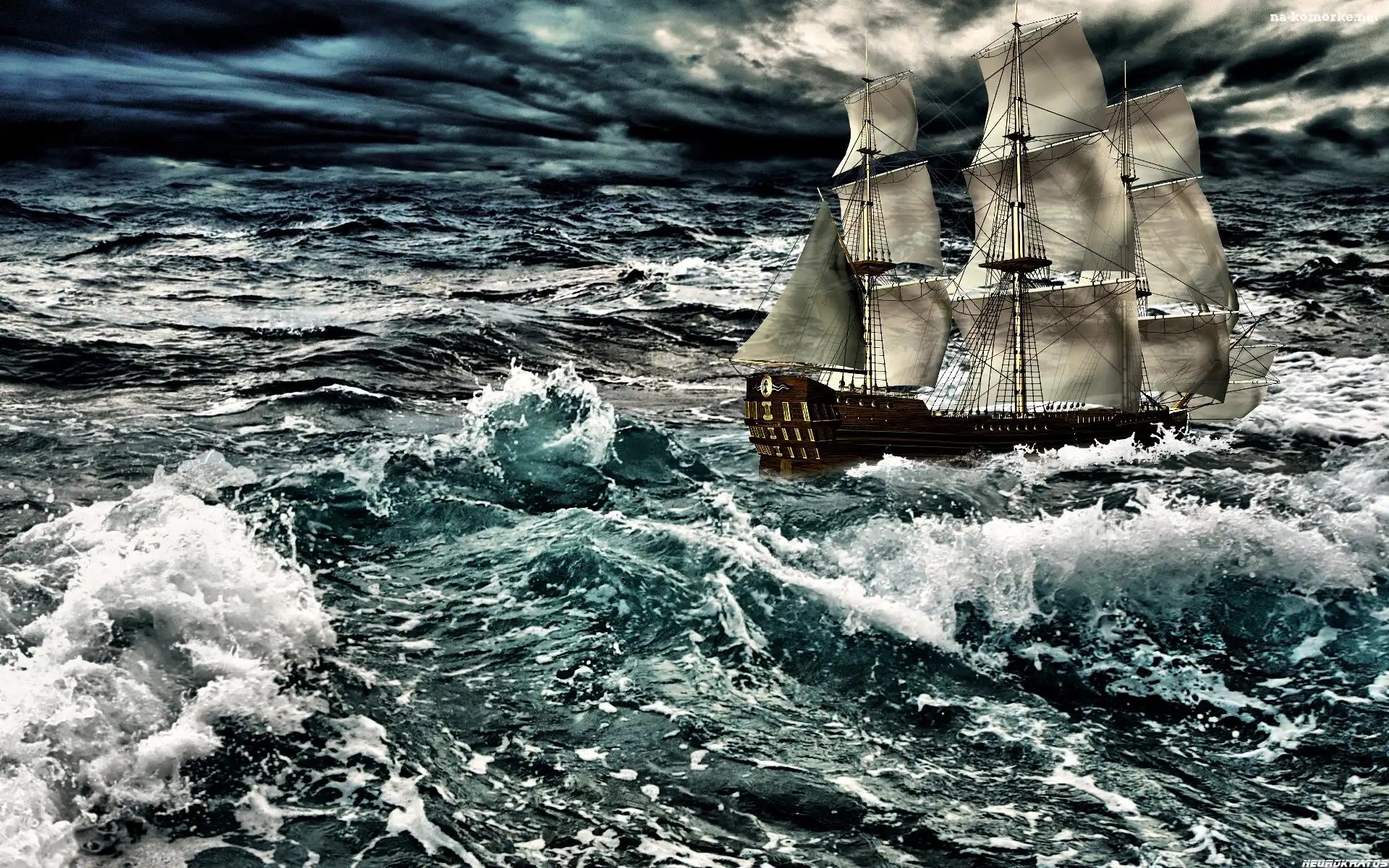 Żaglowiec, Morze, Sztorm na Komórkę