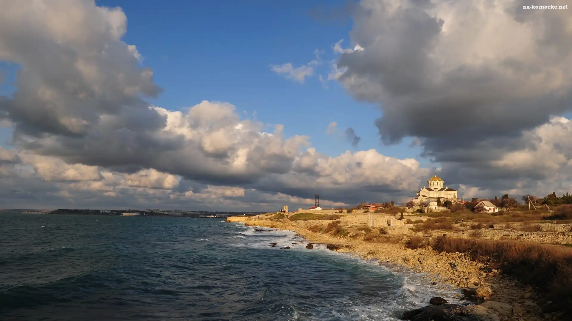 Krym, Morze, Brzeg, Chmury, Cerkiew na Komórkę