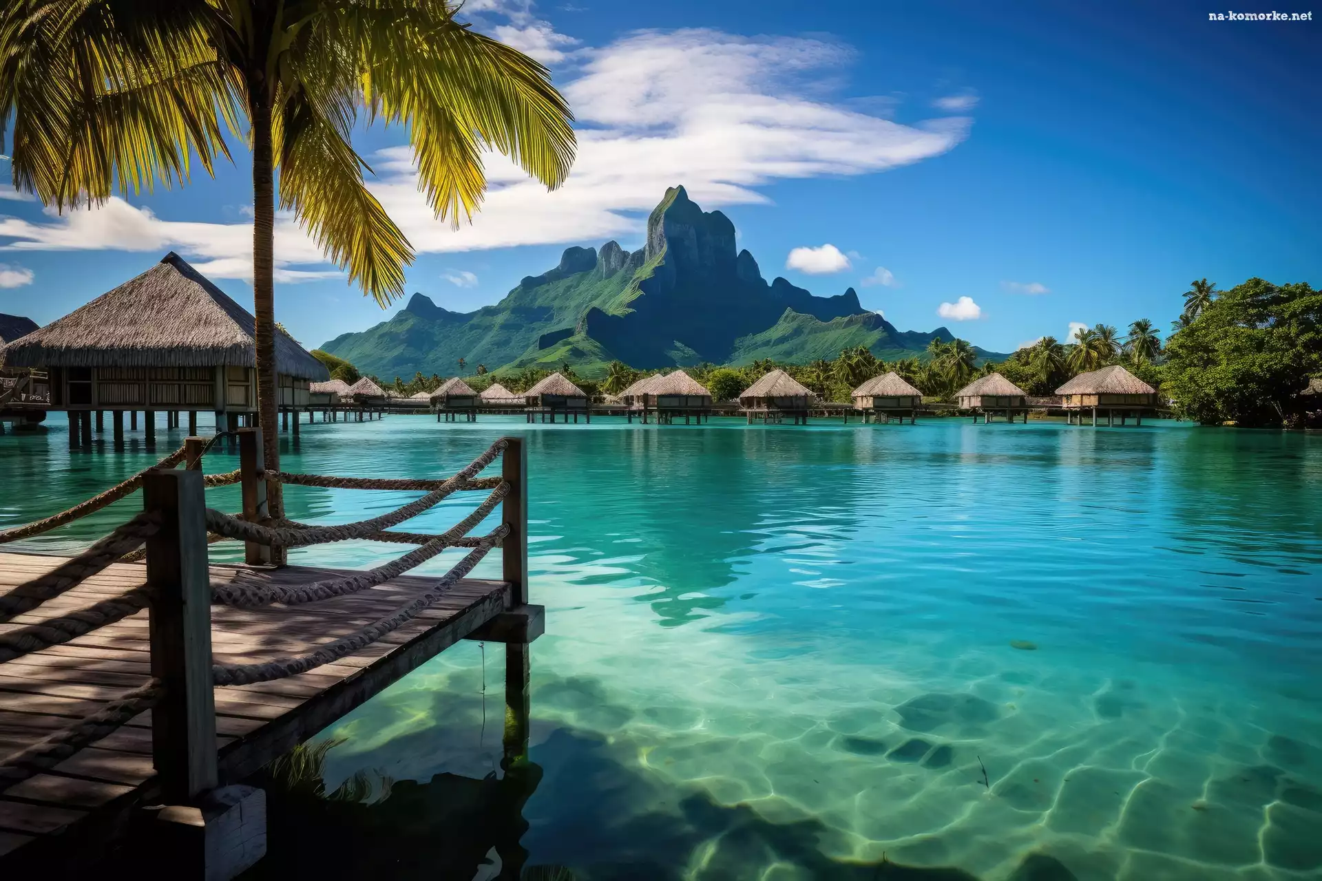 Palmy, Tropiki, Bungalow, Pomost, Góra, Grafika, Domki, Morze na Komórkę