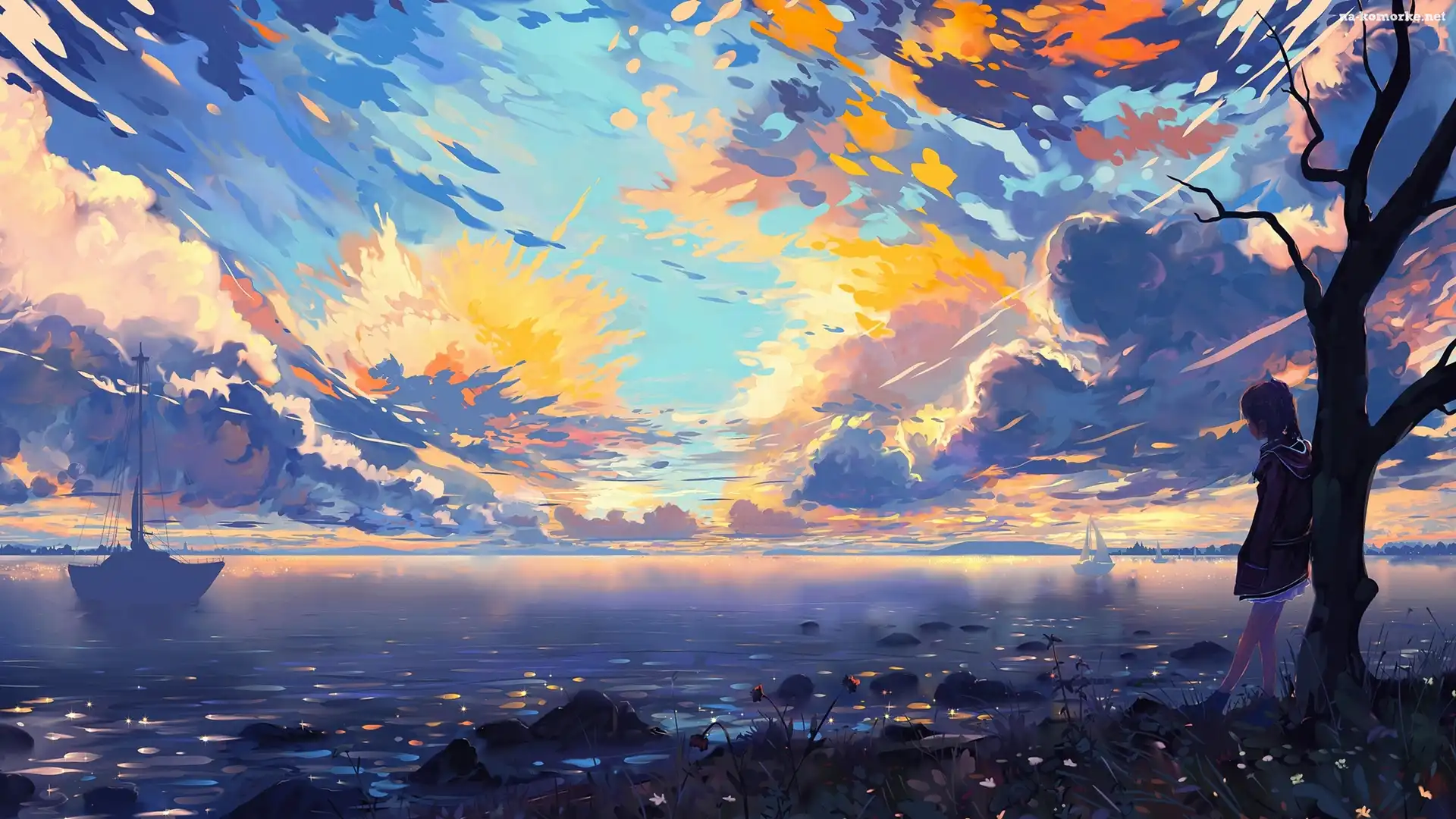 Morze, Dziewczyna Paintography, Chmury, Żaglówki na Komórkę