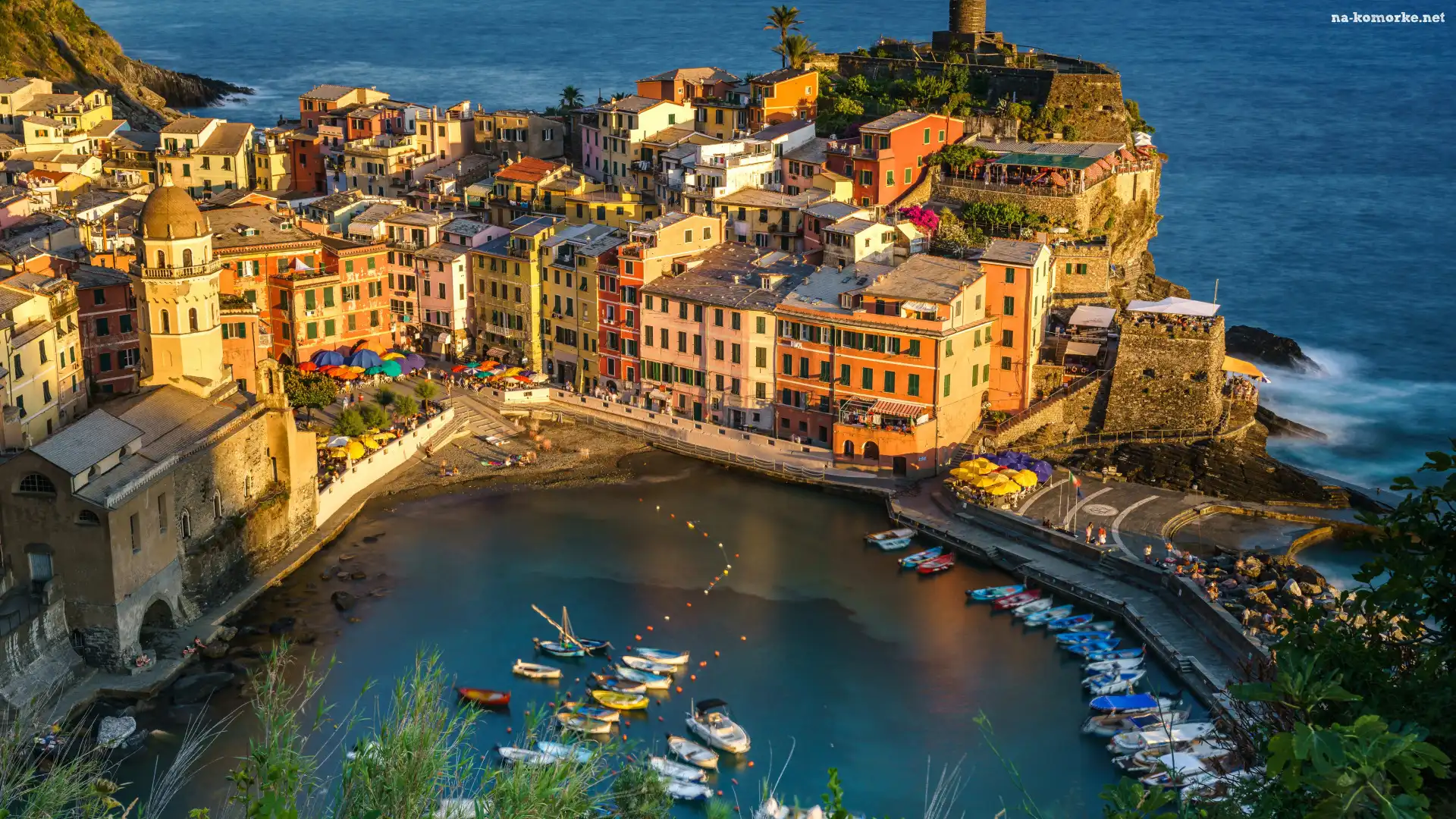 Morze Liguryjskie, Włochy, Vernazza, Domy, Zatoka na Komórkę