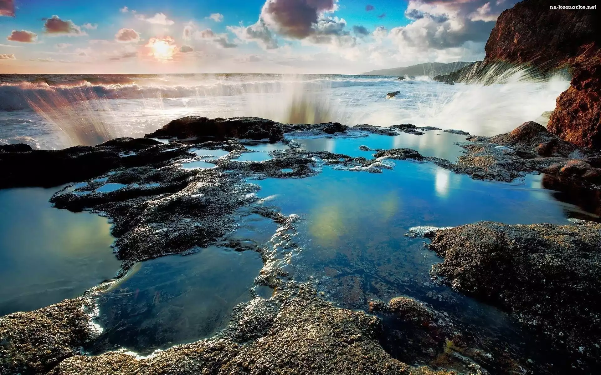 Morze, Chmury, Fale, Skały na Komórkę